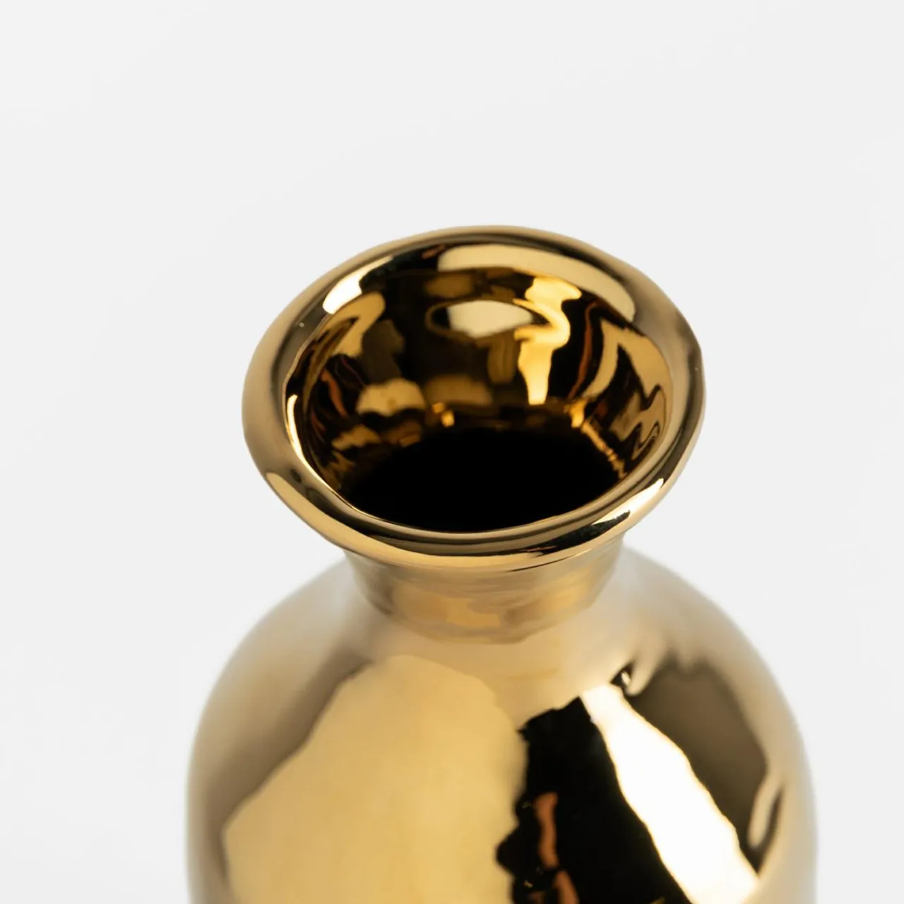 Lubisz subtelne elementy dekoracyjne we wnętrzu? Nasz złoty wazon przypominający butelkę, to doskonały wybór do nowoczesnej przestrzeni w stylu glamour. Złote wykończenie w połysku przykuwa wzrok i staje się centrum każdej aranżacji.