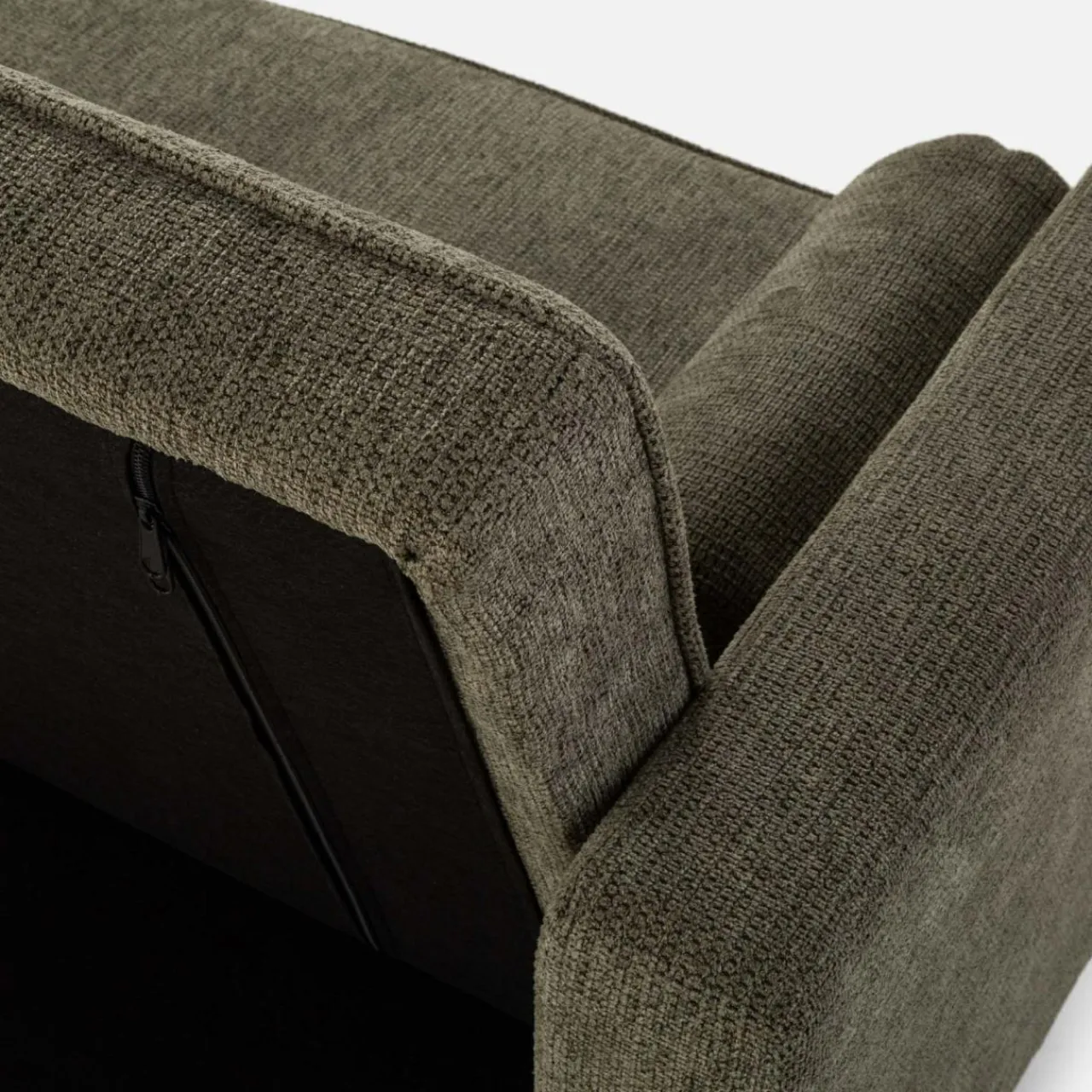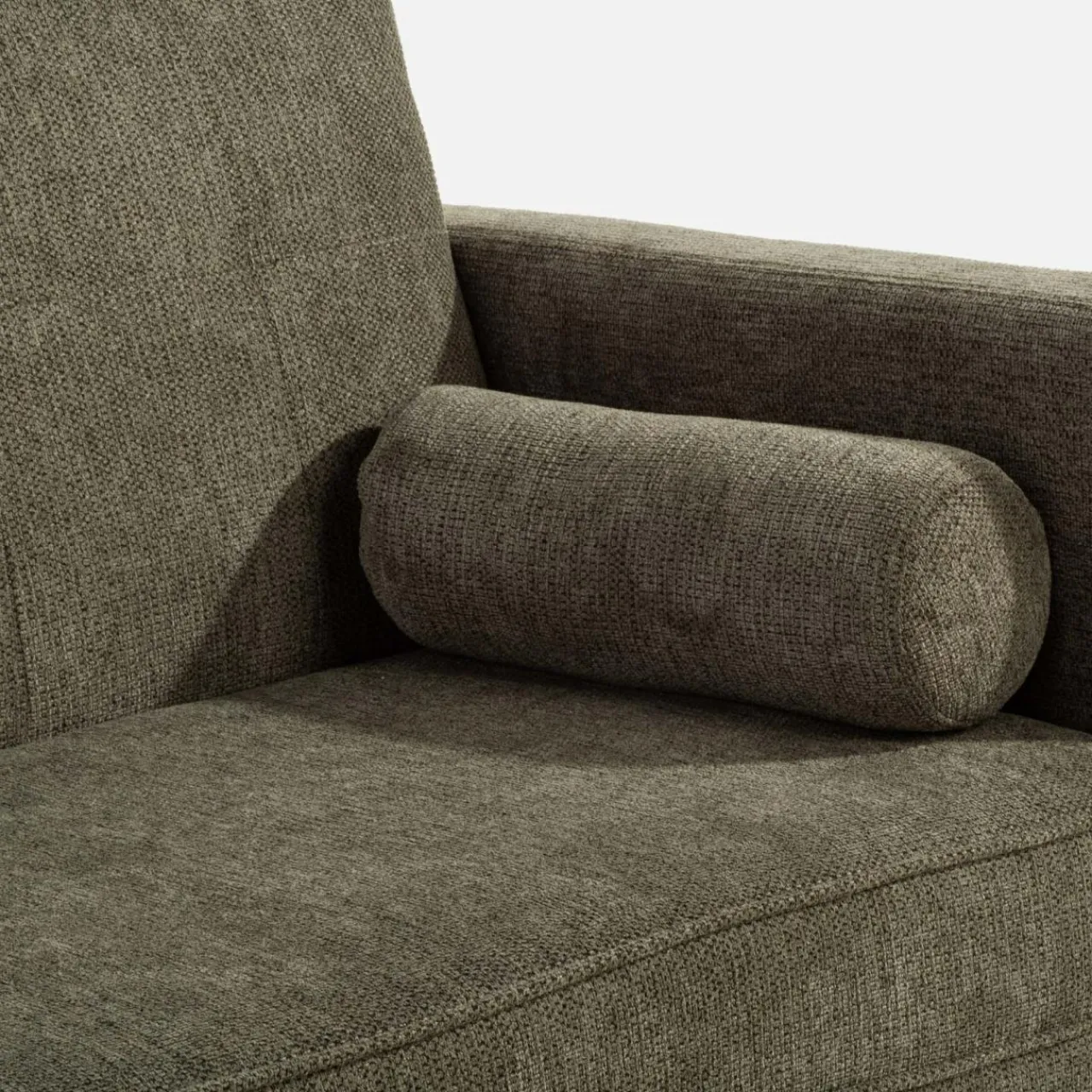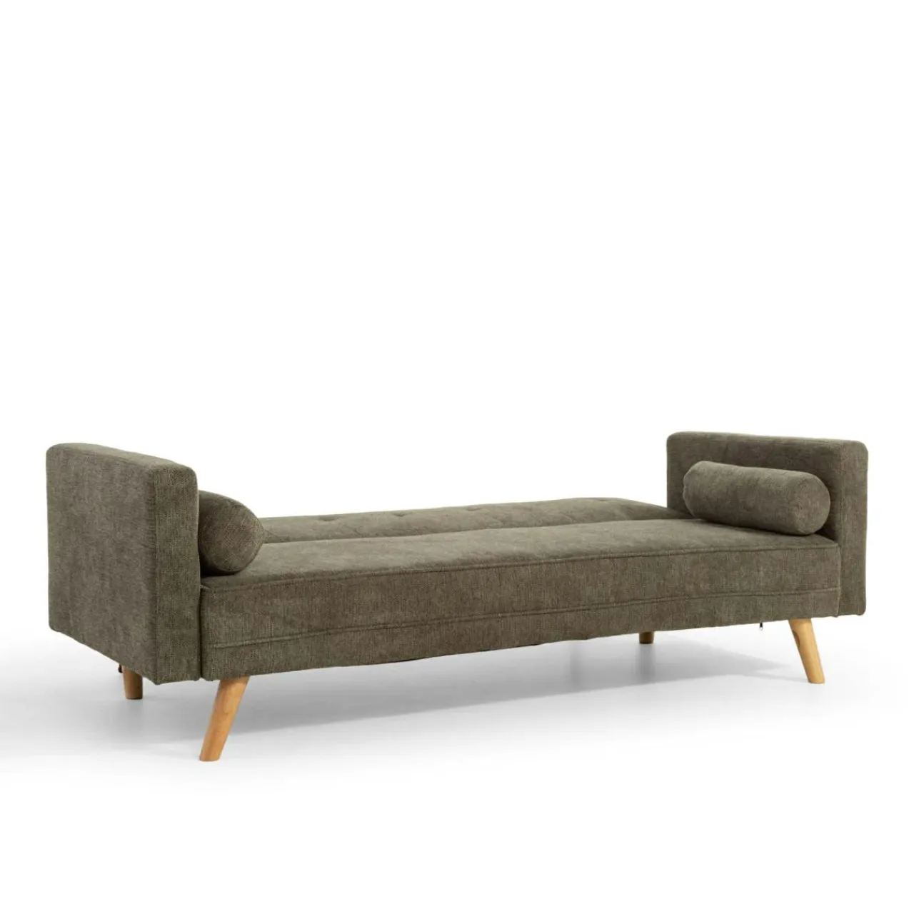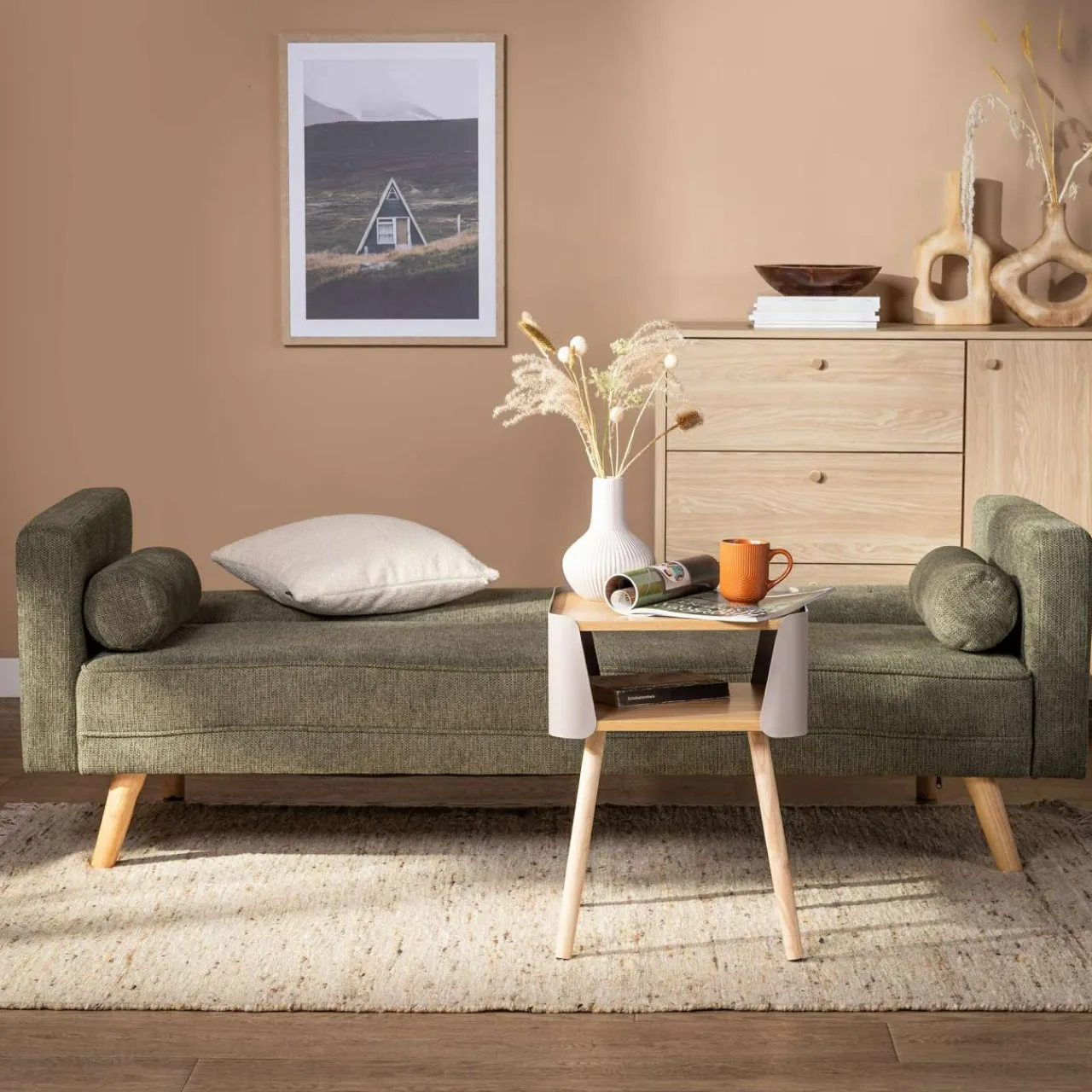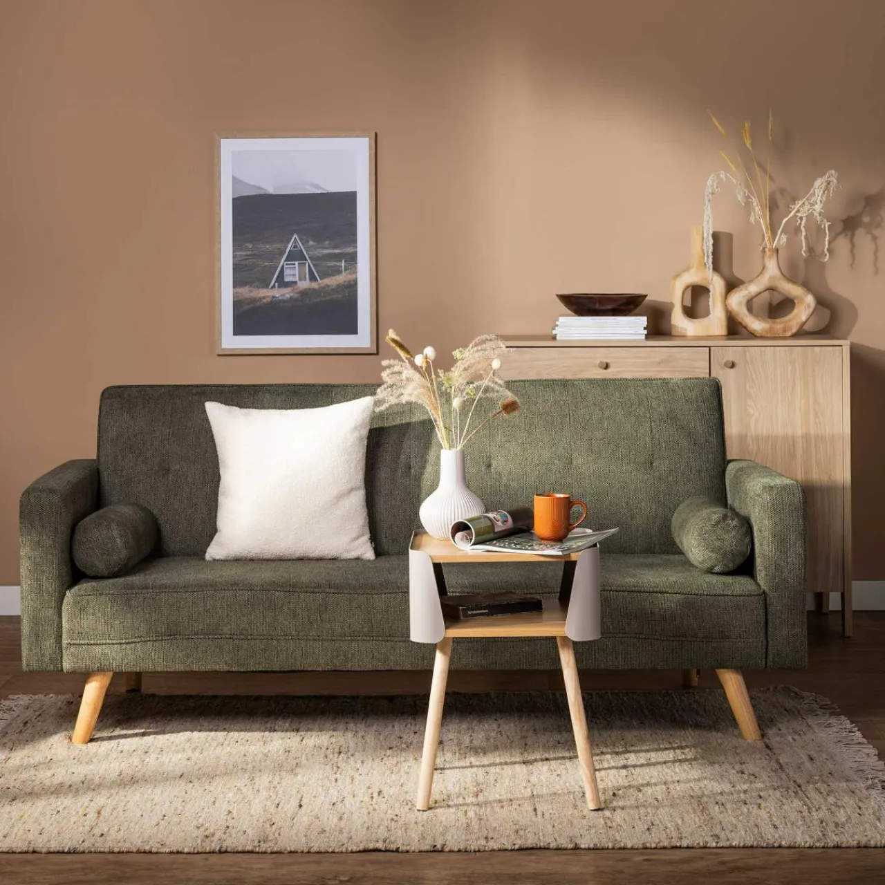 Wersalka LETTIMA w oliwkowym kolorze dopełni salon w odcieniach ziemi. Drewniane nóżki dopasujesz do jasnych mebli i podkreślisz naturalny wygląd wnętrza.