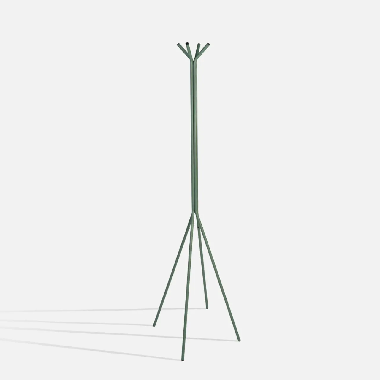 Smukły kształt wieszaka sprawia, że sprawdzi się on nawet w niewielkich przedpokojach i korytarzach. Jego minimalistyczna konstrukcja składa się z metalowych rurek wybarwionych na zielono – wieszak odnajdzie się w nowoczesnym wnętrzu, ale też retro czy vintage.