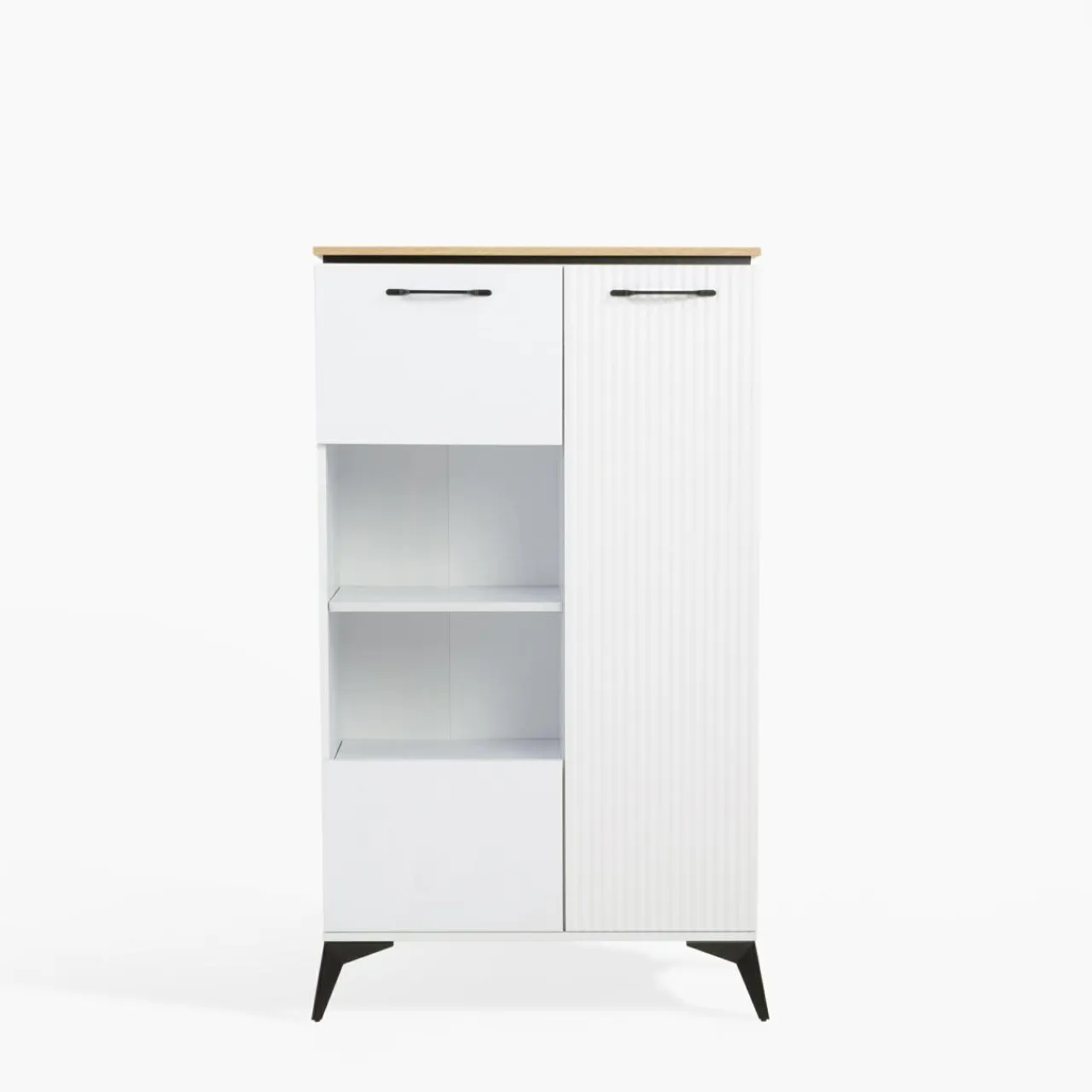 - Białe meble to ponadczasowe rozwiązanie. Kolekcja VELUTTO wzbogacona o ryflowanie na frontach świetnie wpisze się w nowoczesne pomieszczenia.