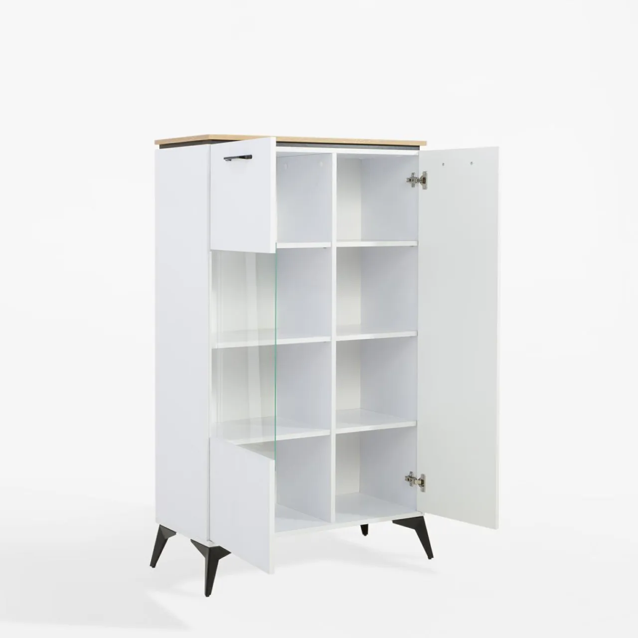W witrynie niskiej VELUTTO wyeksponujesz ulubione filiżanki, dekoracje i pamiątki. Ukryte za szklanym frontem będą bezpieczne przed kurzem i zabrudzeniami.