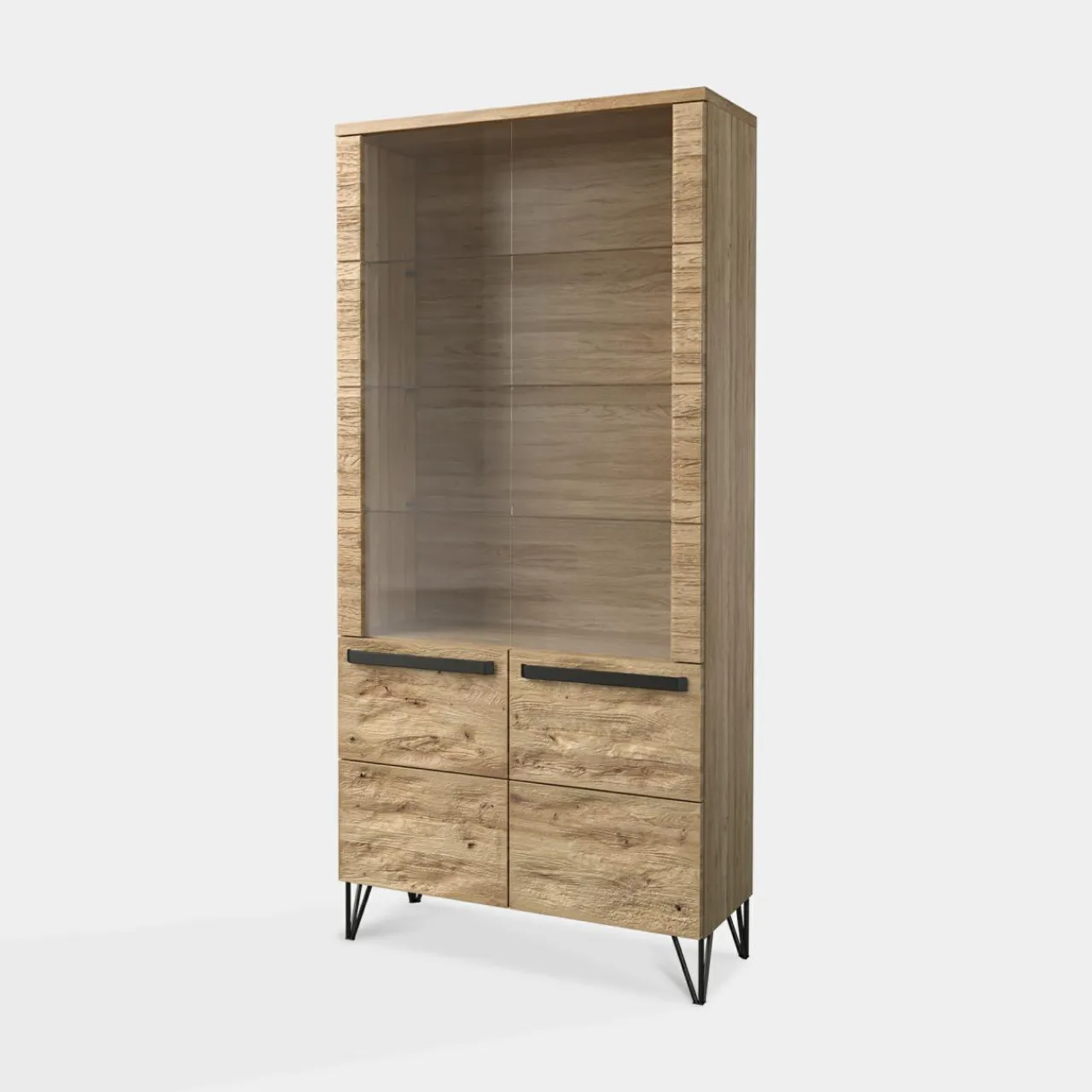 Witryna PAMIR pomieści w swoim wnętrzu całą kolekcję kolorowych filiżanek, szklanych aniołków lub porcelanowej zastawy. 4 wnęki widoczne za szklanym frontem wyeksponują wszystko, co przyjdzie Ci do głowy.