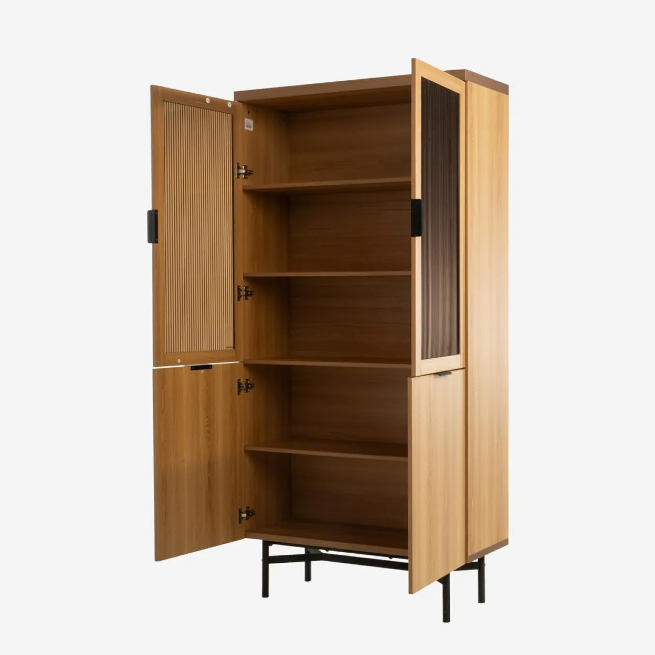 Wysoka witryna RIVALE zapewnia sporo miejsca na ulubioną porcelanę, którą wyeksponujesz za ornamentowym frontem. Swój urok zawdzięcza dymionemu szkłu hartowanemu w kolorze brązowym. Barwa szkła i pionowe żłobienia sprawiają, że witryna odnajdzie się zarówno w nowoczesnych wnętrzach, jak i tych nieco vintage.