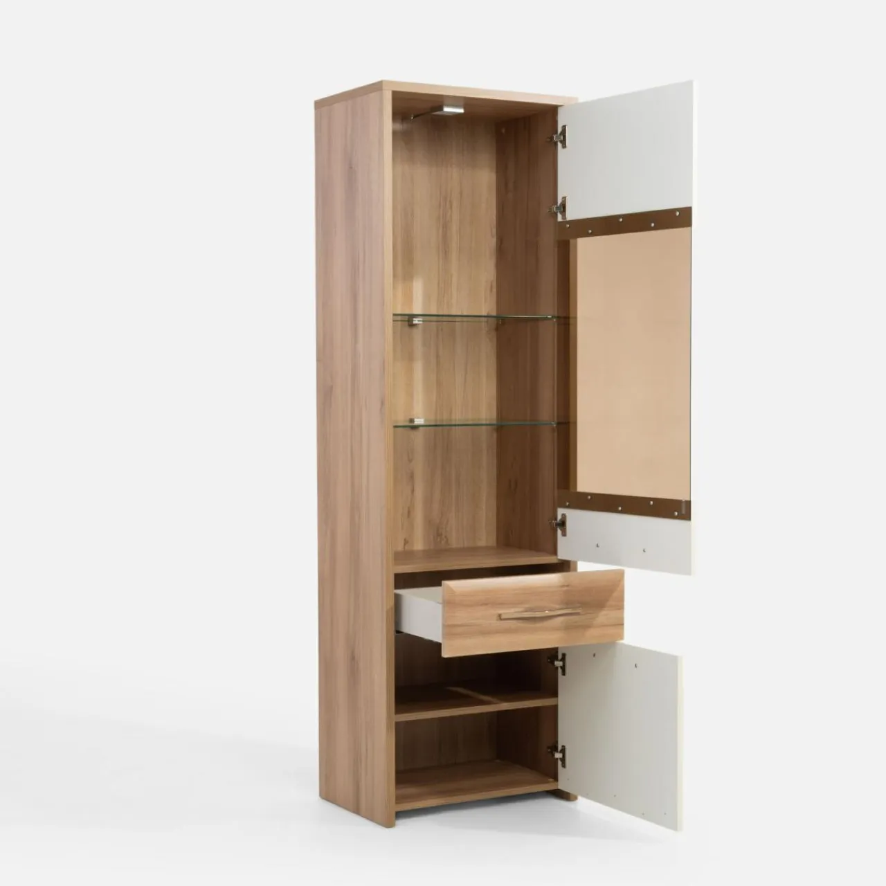 - Wysokość 194 cm – zapewnia dużo miejsca na przechowywanie i eksponowanie dekoracji w jednym meblu.