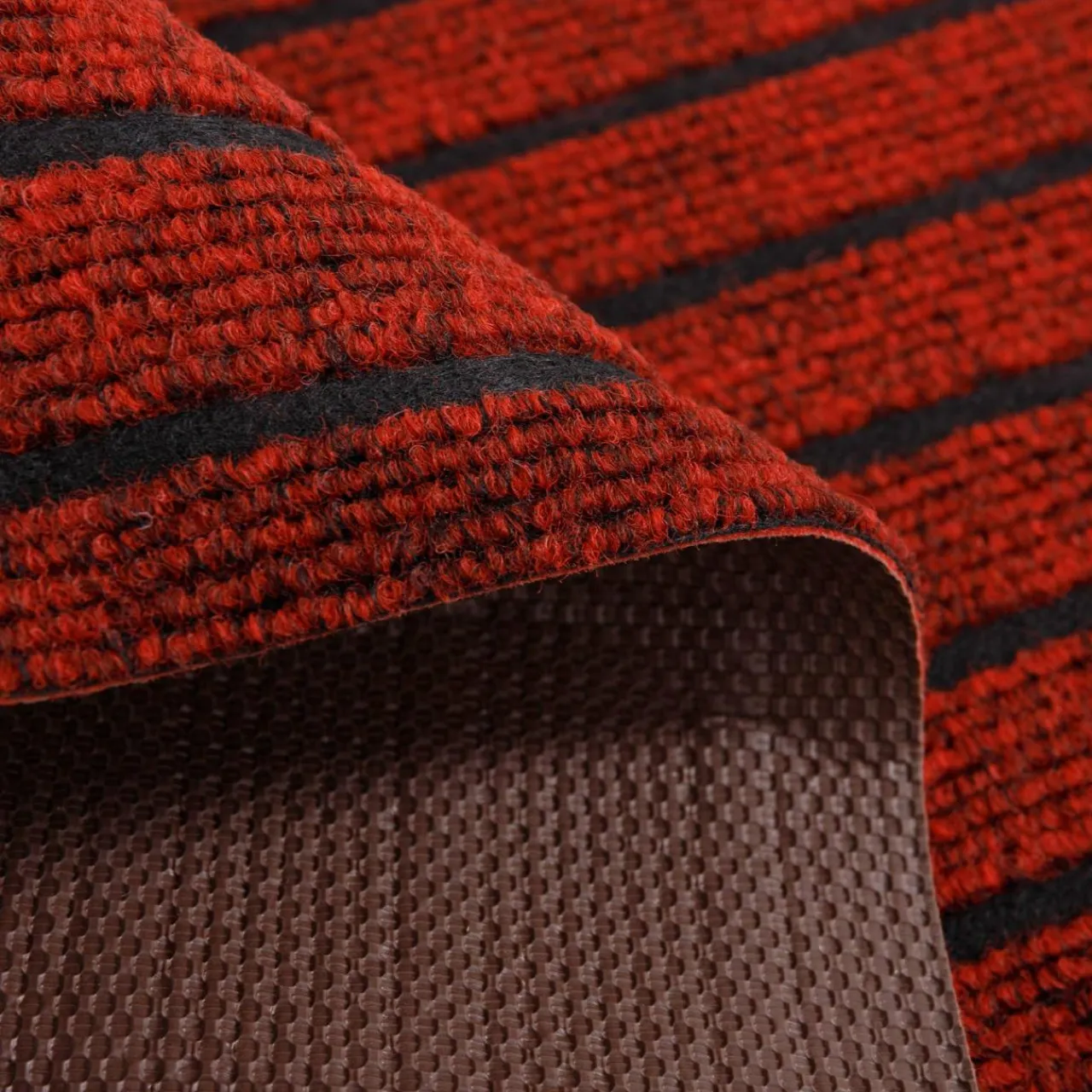 - Poliester w składzie (100%) daje wytrzymałość. Wycieraczka ma także podkład z materiału TPR (100%) – elastycznego i odpornego na wilgoć.