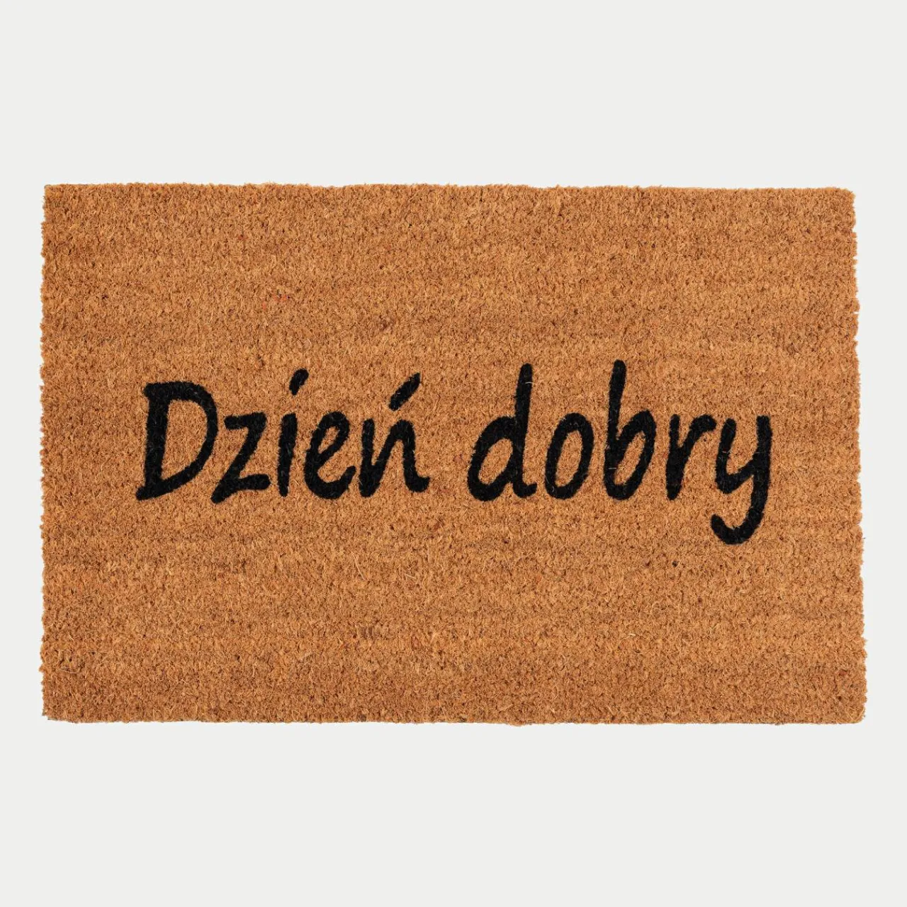 Zadbaj o czystość w swoim mieszkaniu – połóż w przedpokoju wycieraczkę kokosową w odcieniach beżu z wesołym napisem „DZIEŃ DOBRY”. Zatrzymaj brud już na etapie wejścia do mieszkania.