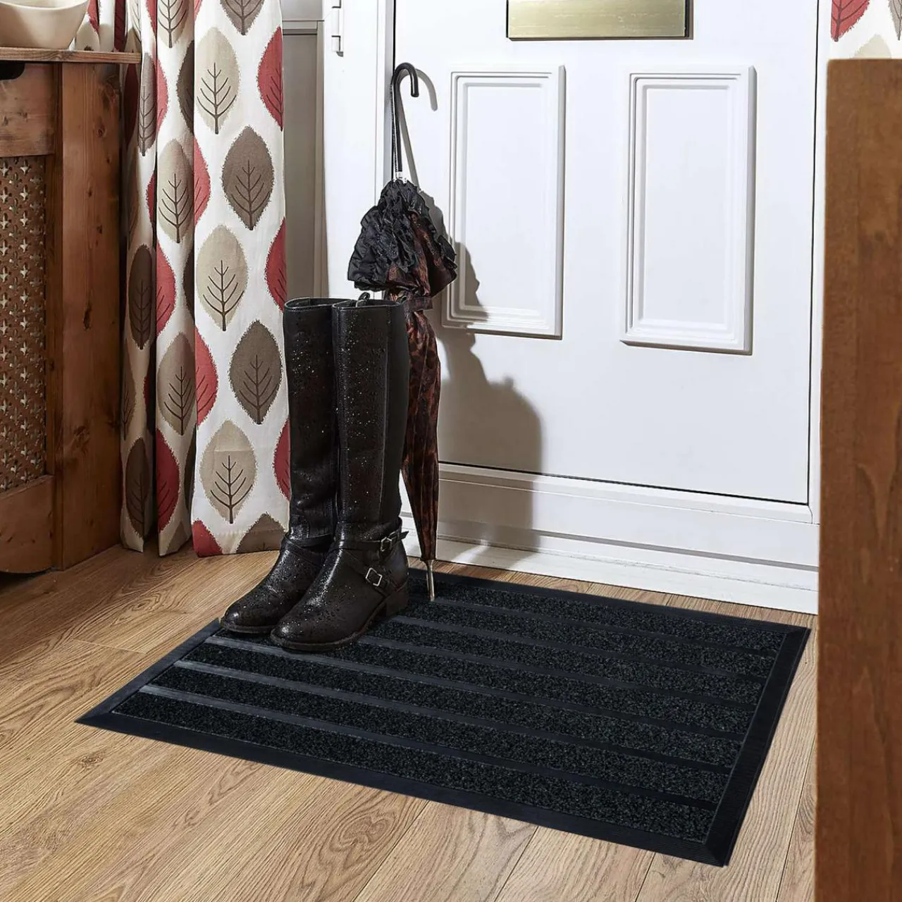 - Spód wycieraczki wykonany jest z gumy, która ma właściwości antypoślizgowe. Nie musisz obawiać się o to, że mata będzie się przemieszczać.