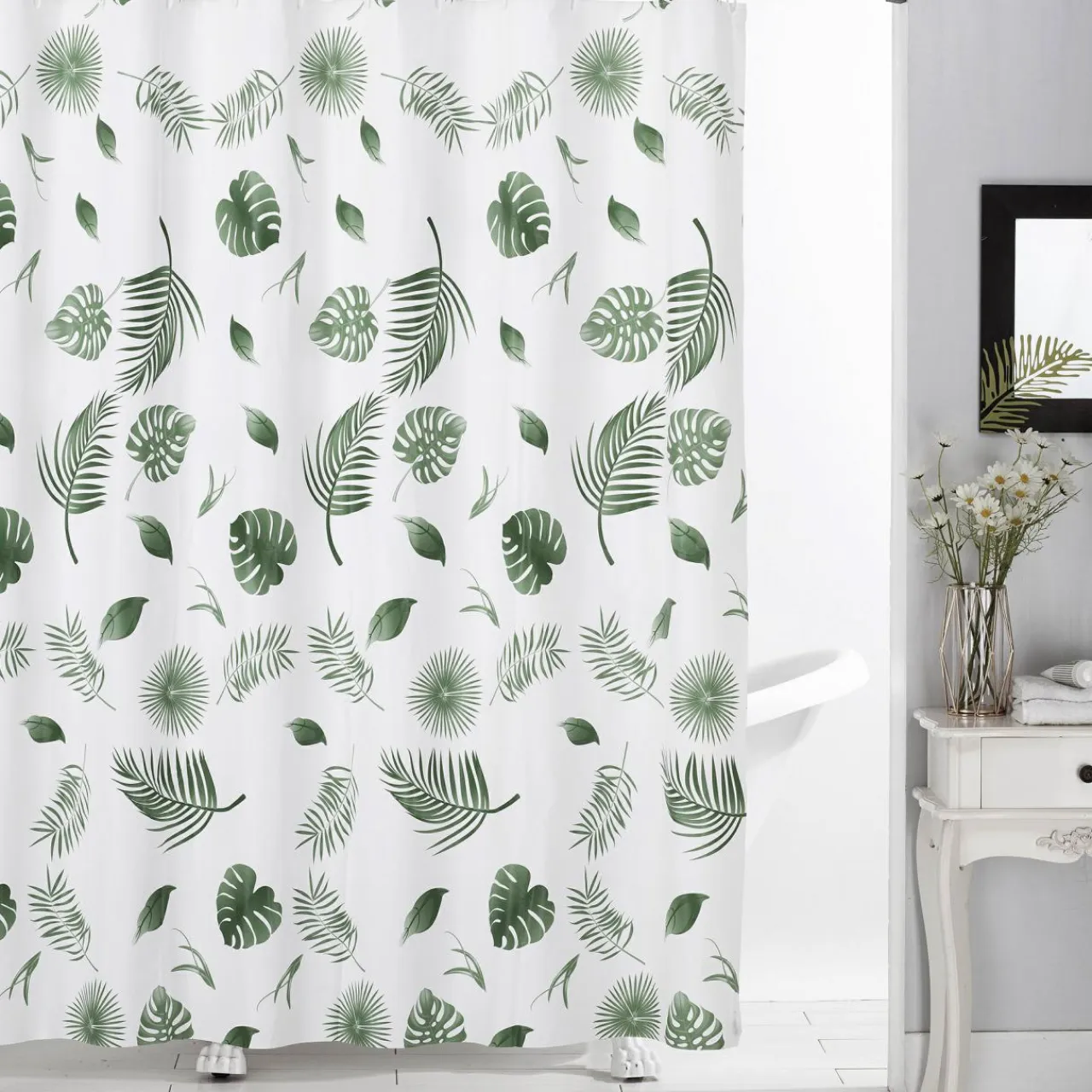 inny Zasłona prysznicowa w zielone liście ROSA 180×180 cm