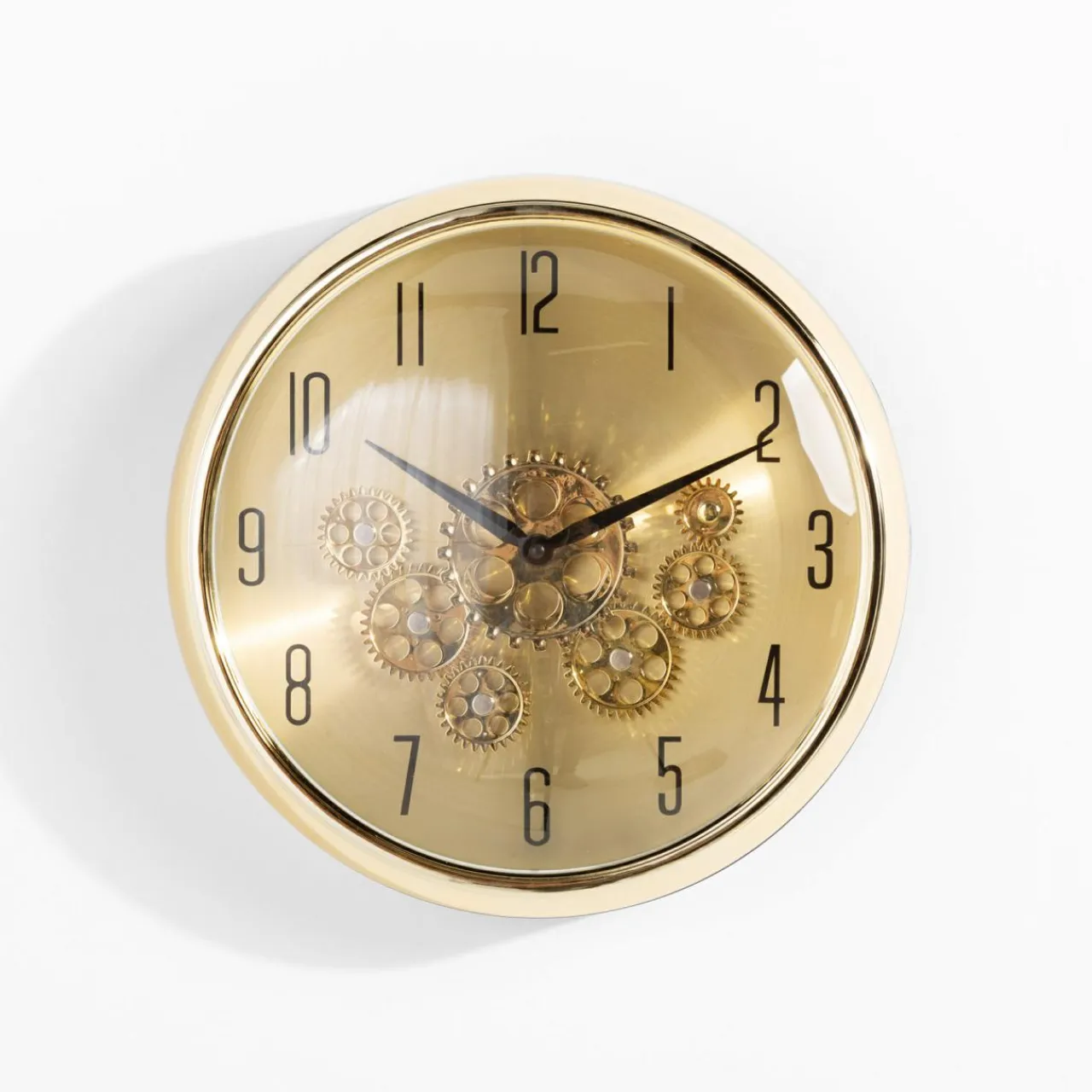 Stylowy zegar ścienny z efektem ruchomych zębatek przyciąga wzrok i nadaje wnętrzu nieco industrialnego charakteru.