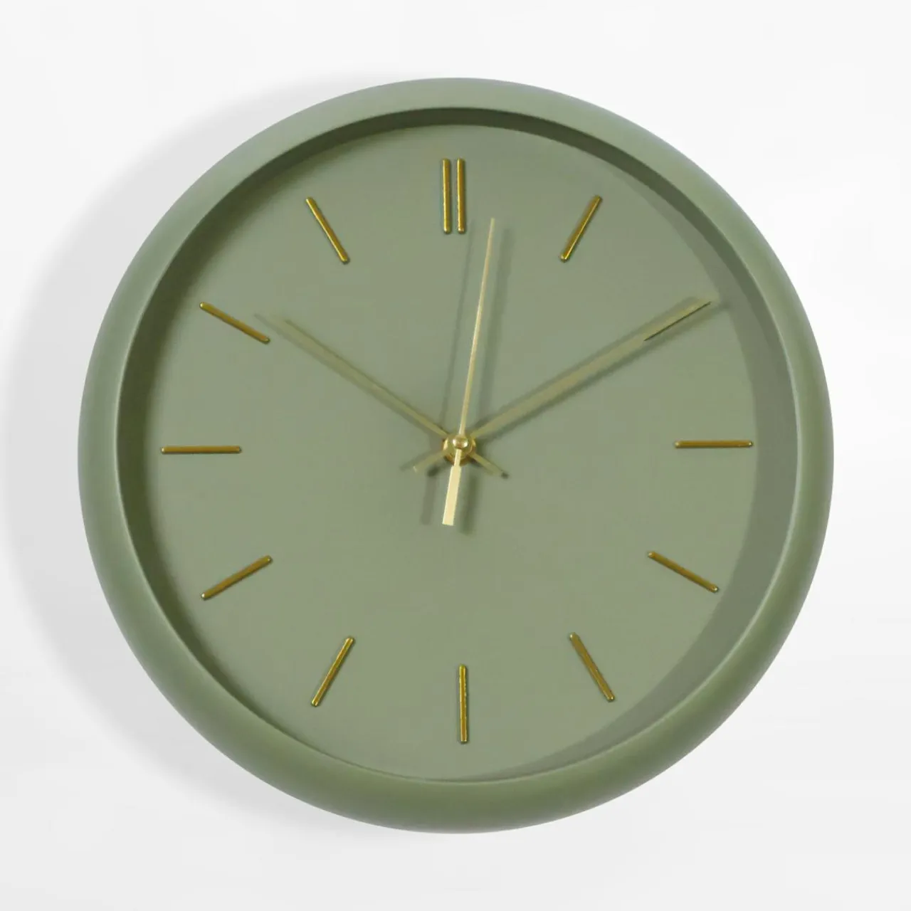 Okrągły zegar o średnicy 30,5 cm zawiesisz w kuchni, salonie lub sypialni – zielony kolor doda aranżacji naturalności.