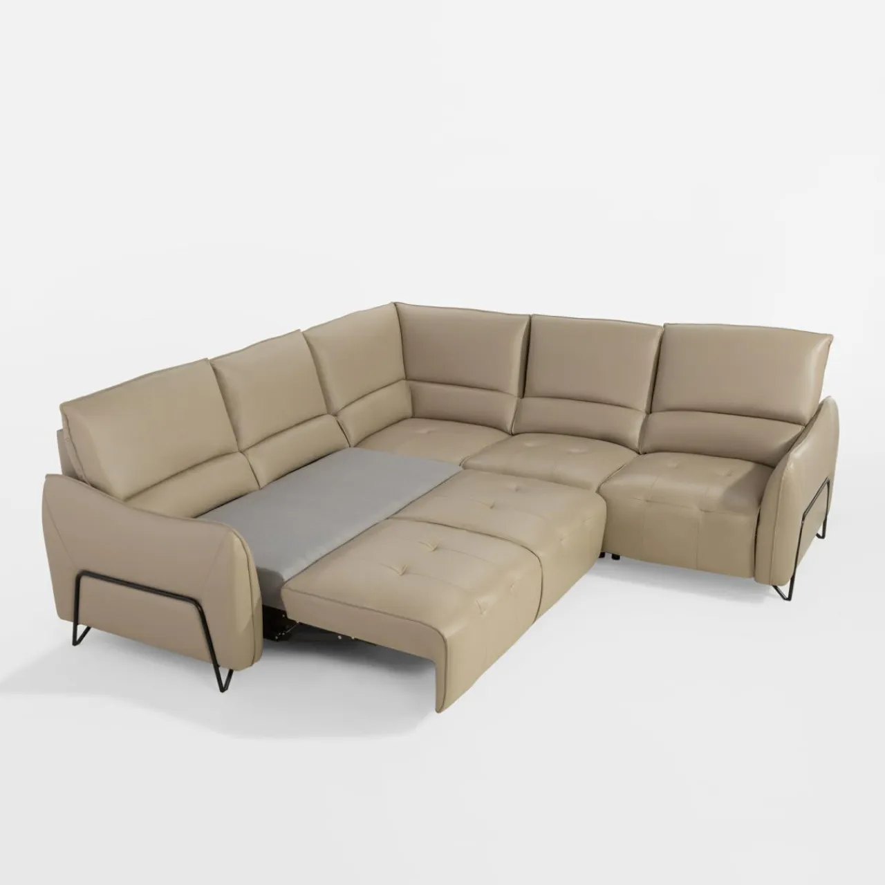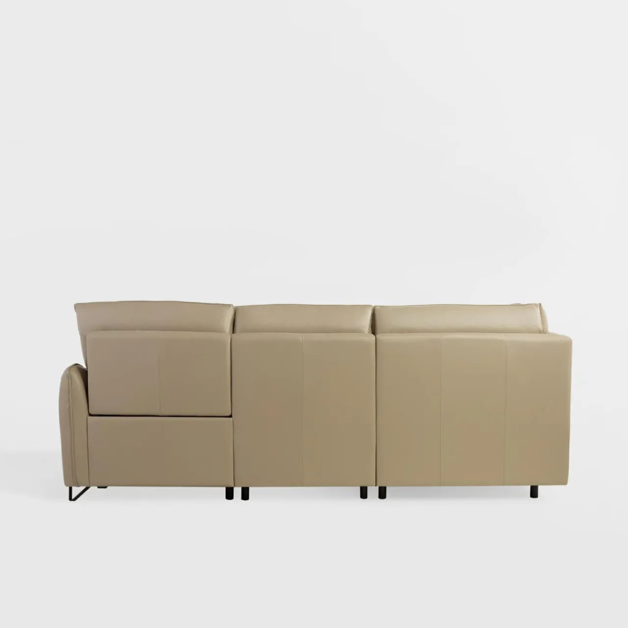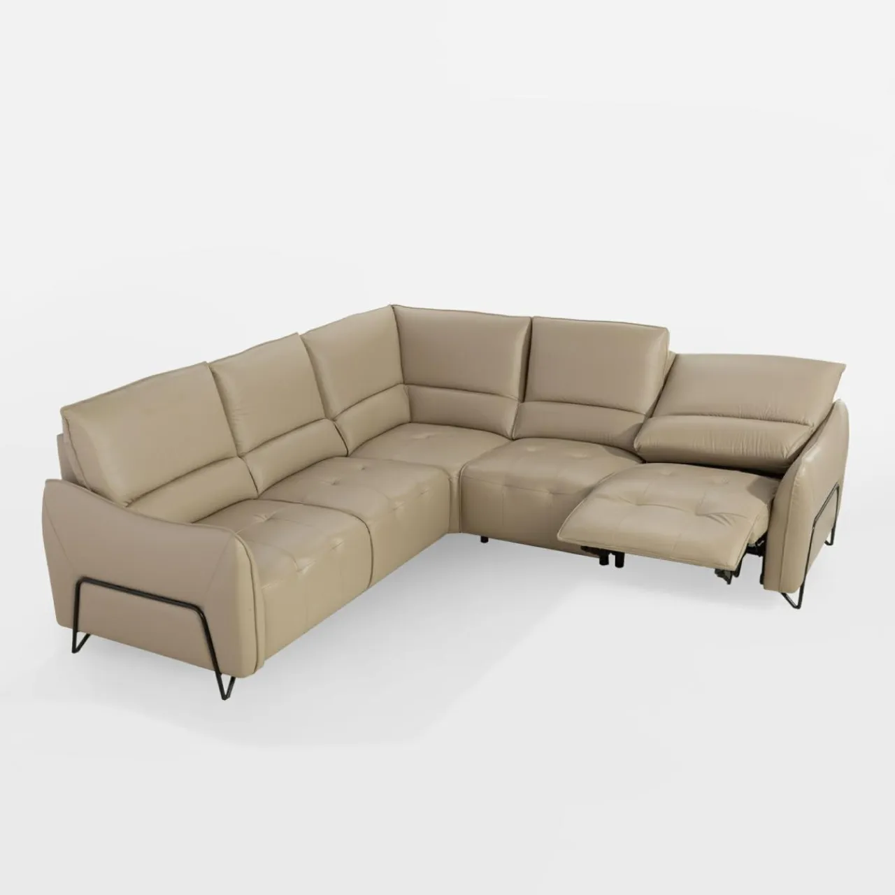 - Narożnik jest wyposażony w fotel z elektrycznie sterowaną funkcją relaksu – wystarczy nacisnąć przycisk, aby się wygodnie odchylić i rozprostować nogi.