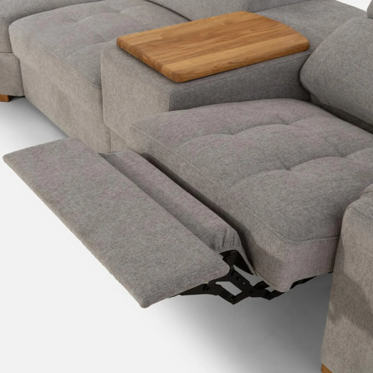 - Narożnik posiada wbudowany fotel z funkcją relaks włączaną elektrycznie – wciśnij guzik, aby wygodnie się odchylić i rozprostować nogi