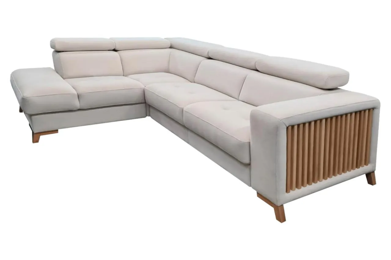 - Dekoracyjne boku z lamelami sprawiają, że narożnik świetnie zaprezentuje się we wnętrzu urządzonym w stylu japandi