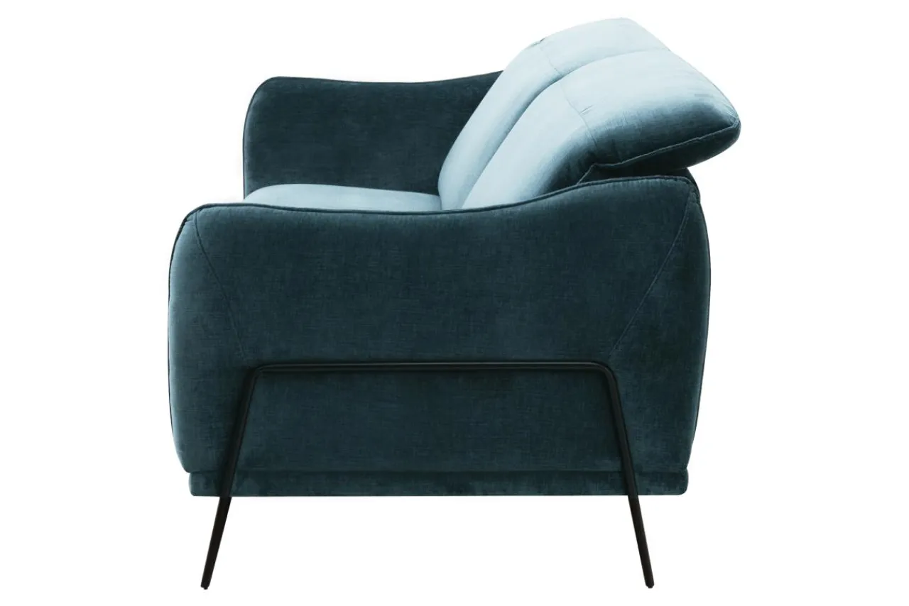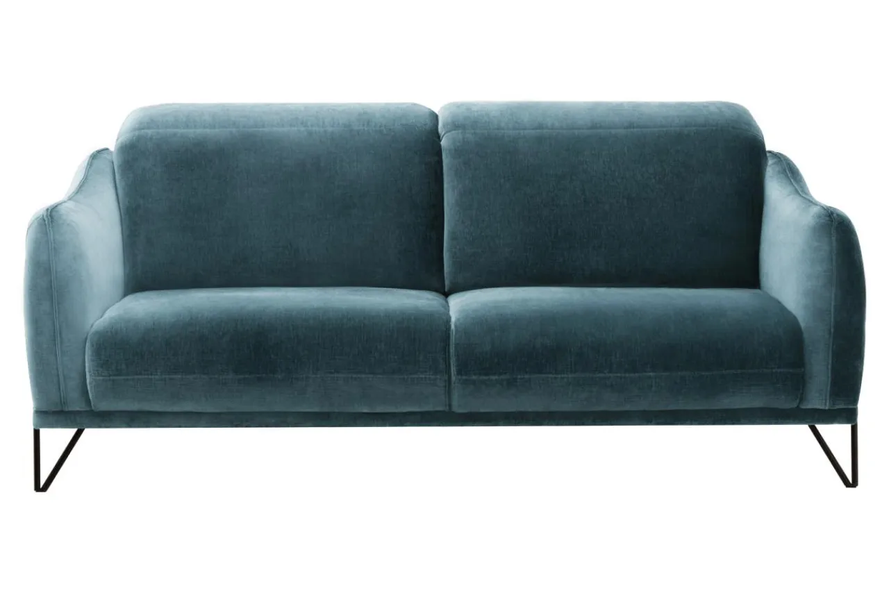 Wysokie metalowe nóżki i obłe kształty sprawiają, że sofa wpasowuje się w aktualnie obowiązujące trendy.