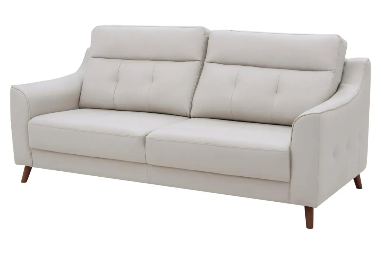 Sofa FALUN doda ekskluzywności każdej aranżacji. Dzięki jasnej barwie skóry naturalnej nie przytłoczy aranżacji. Pozwoli za to urządzić pełną elegancji nowoczesną strefę wypoczynkową.