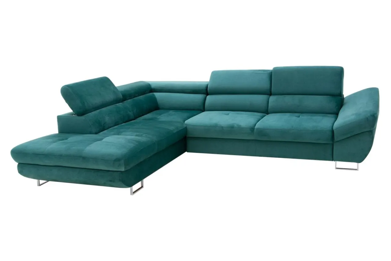 Metalowe nóżki podkreślają nowoczesny charakter narożnika.