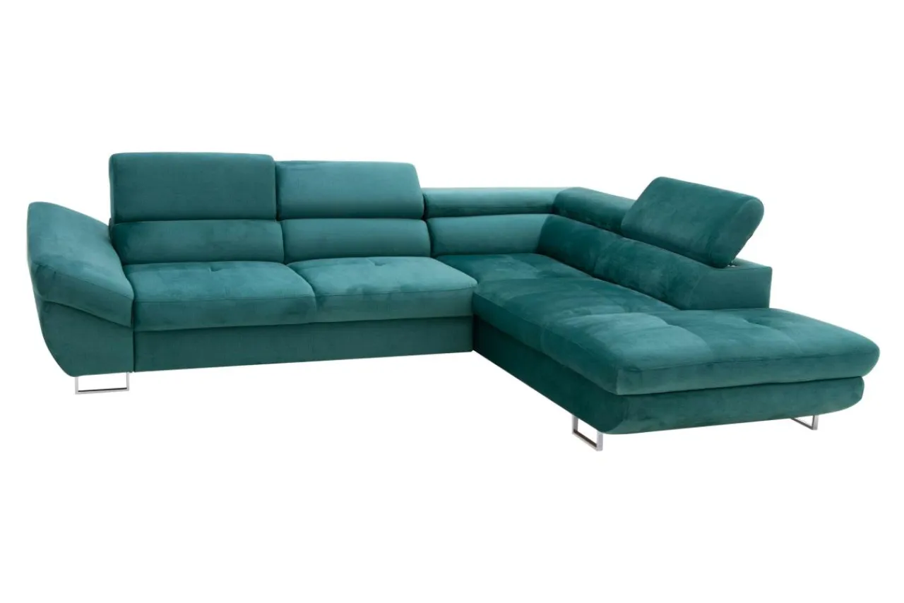 Metalowe nóżki podkreślają nowoczesny charakter narożnika.