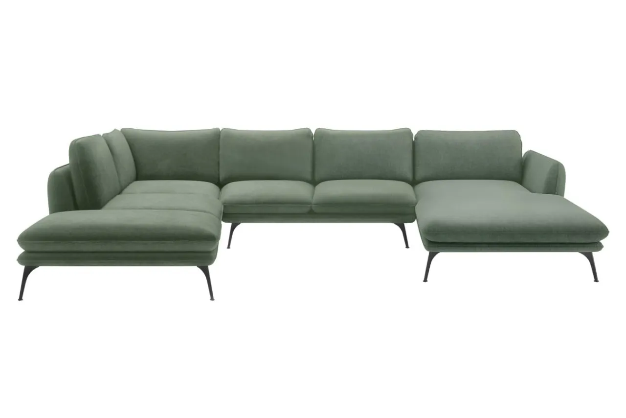 Kształt litery U zapewnia dużo miejsca – dodatkowe siedziska na bokach mebla przydadzą się dla gości.