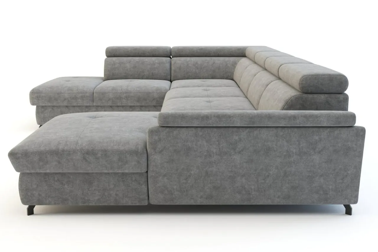 - Metalowe nóżki w czarnym kolorze świetnie pasują do współczesnego designu narożnika i dodają mu lekkości.