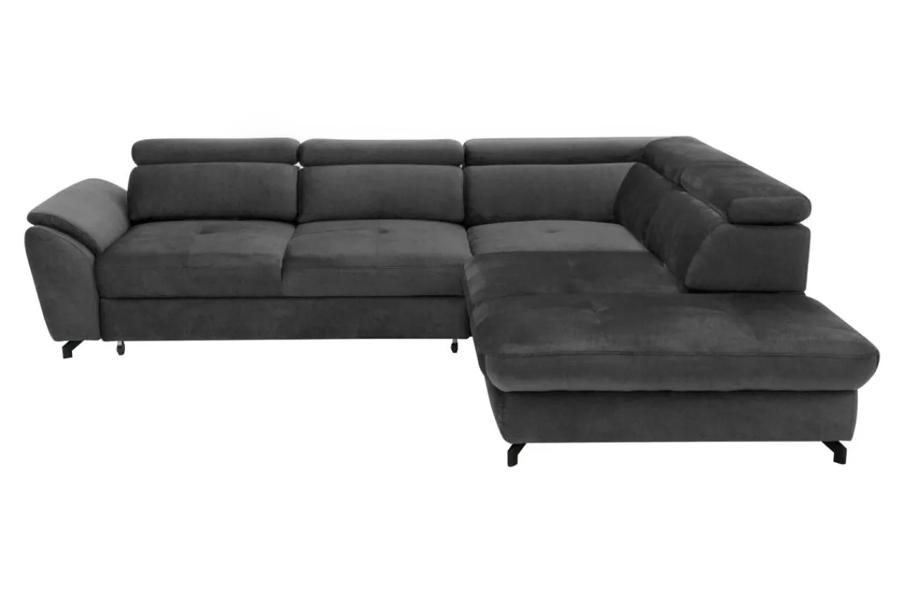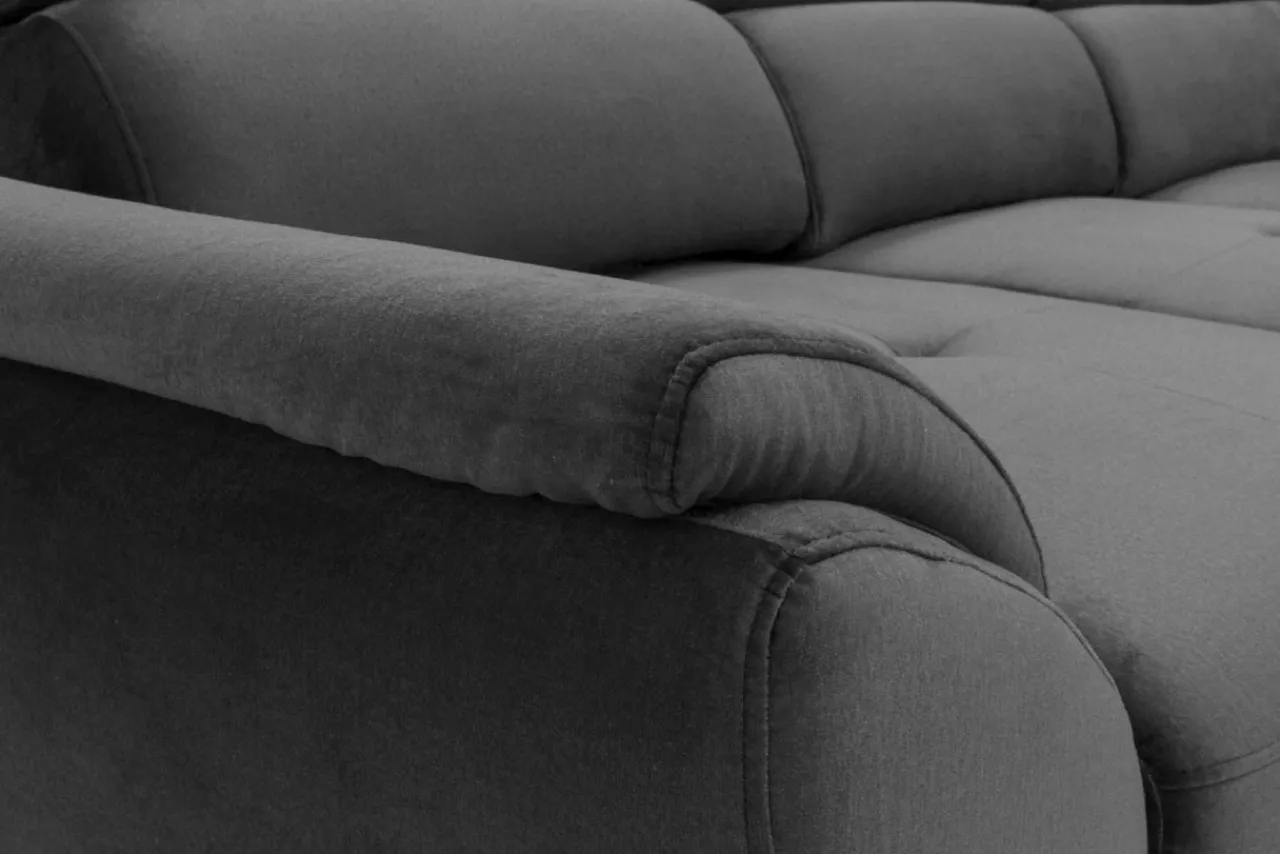 - Narożnik MAROLA ustawiono na eleganckich nóżkach wykonanych z metalu i malowanych na czarno.