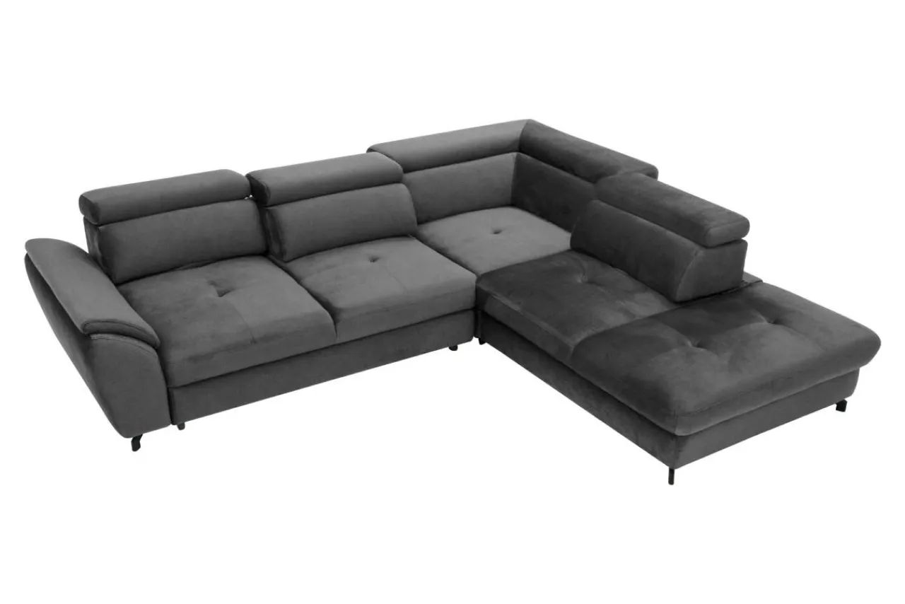 - Główna zaleta: narożnik może swobodnie stać przy ścianie, dlatego że rozkładanie nie wymaga odsuwania go.