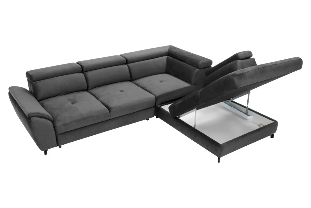 - Rozkładanie: wysuń przednią część narożnika i wyciągnij schowany w środku dodatkowy element.