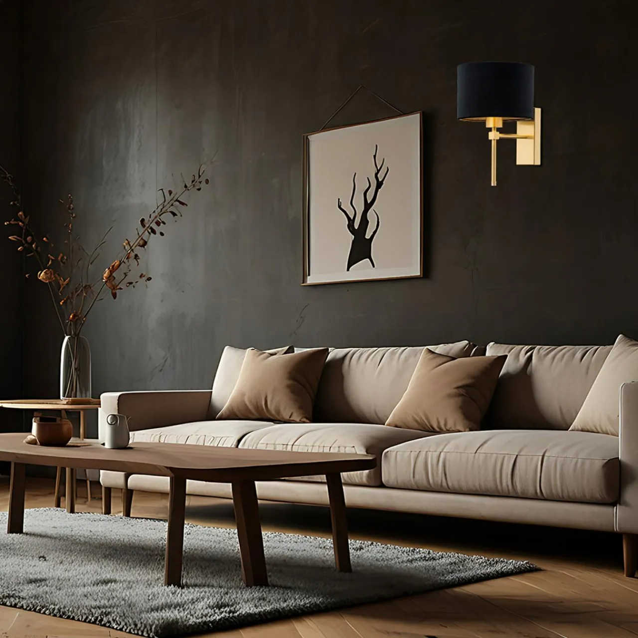 Abażur z czarnej tkaniny oraz podstawa w kolorystyce złota pomogą Ci zbudować wrażenie dystyngowanej elegancji.