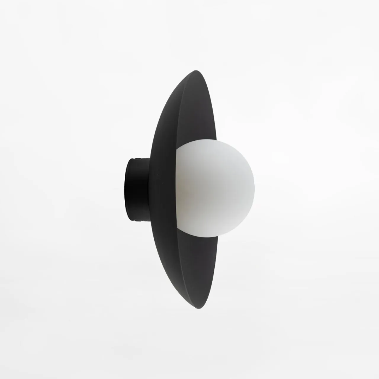 - Podstawa kinkietu jest lekko wklęsła, wykonana z lakierowanego metalu.