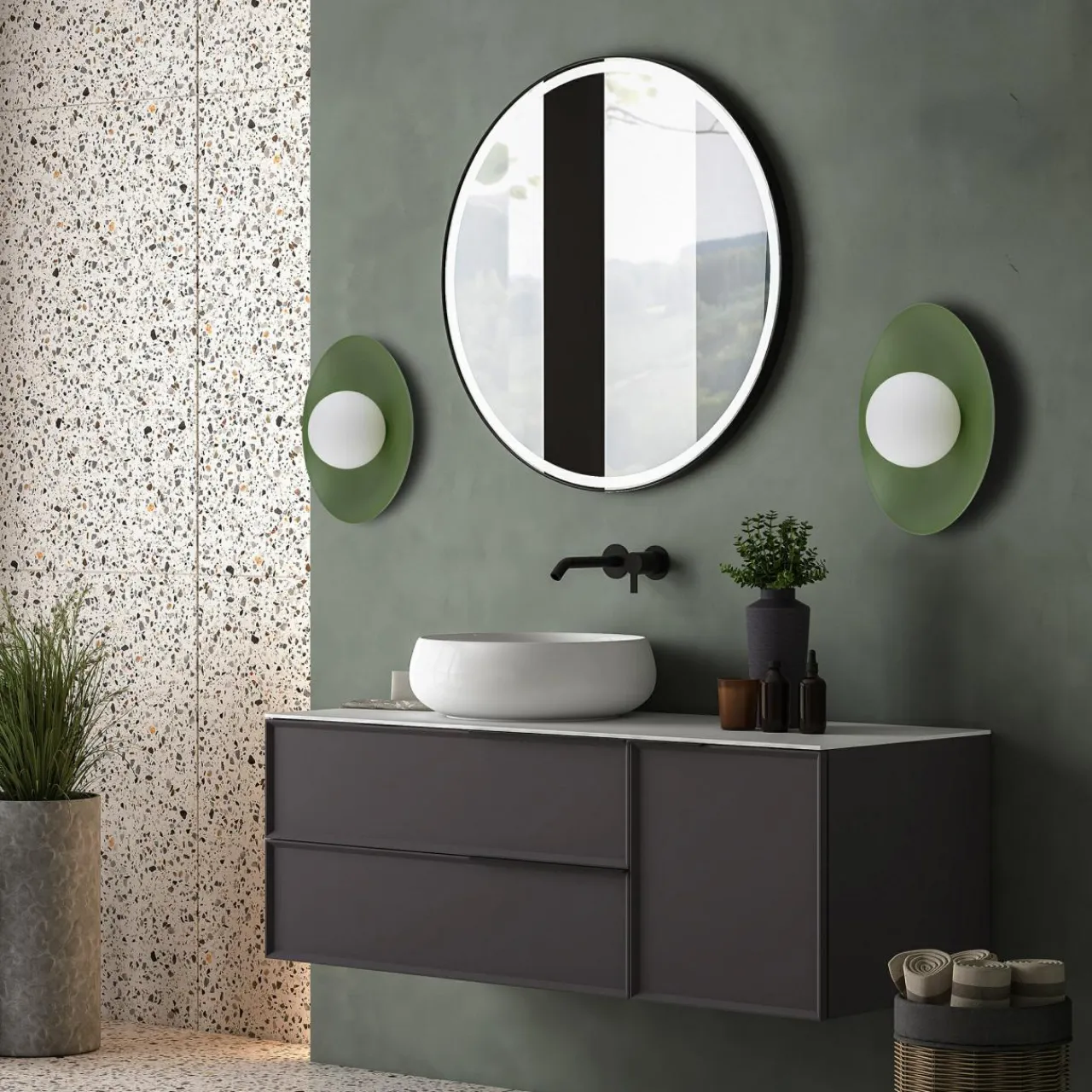 - Podstawa kinkietu jest lekko wklęsła, wykonana z lakierowanego metalu.