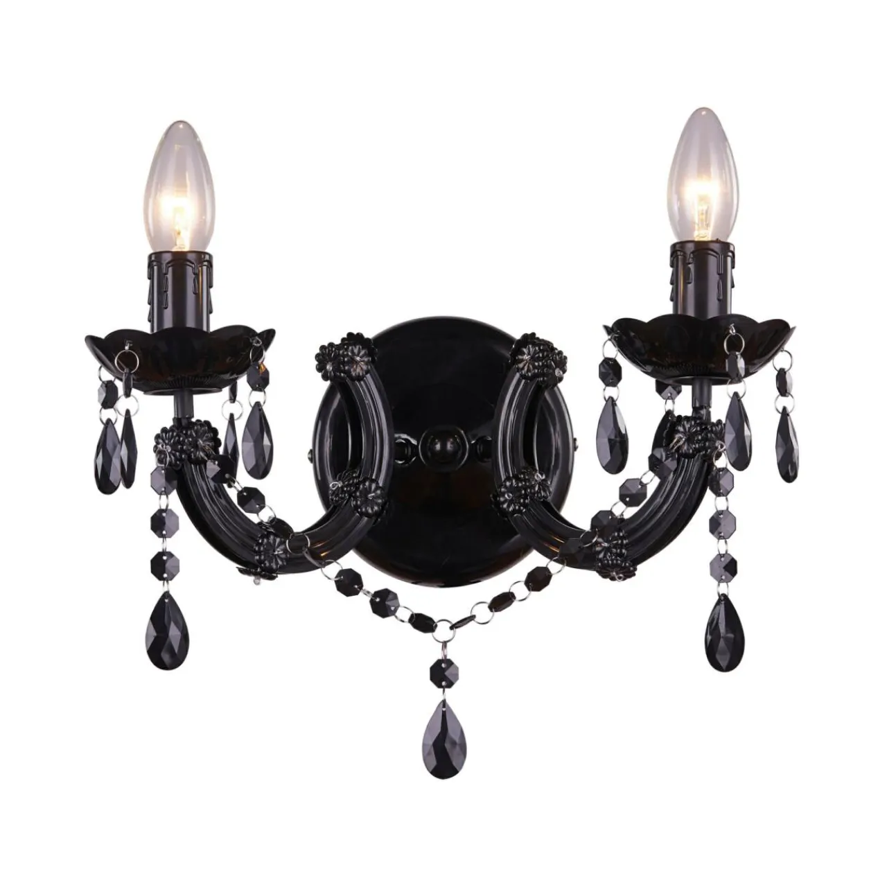 Kinkiet został wykonany z wysokiej jakości metalu. Dodatkowo ozdobne akrylowe szkiełka imitujące kryształ, świetnie sprawdzają się w stylizacji glamour – a czarne wykończenie całosci daje ciekawy i oryginalny efekt wizualny.