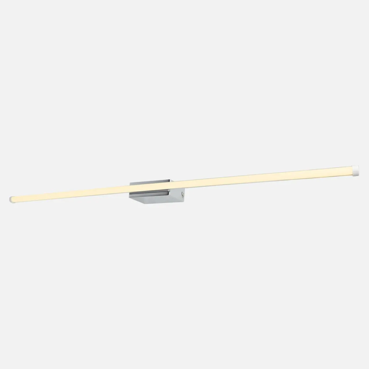 Źródło światła kinkietu ukryte jest za białym akrylowym paskiem.