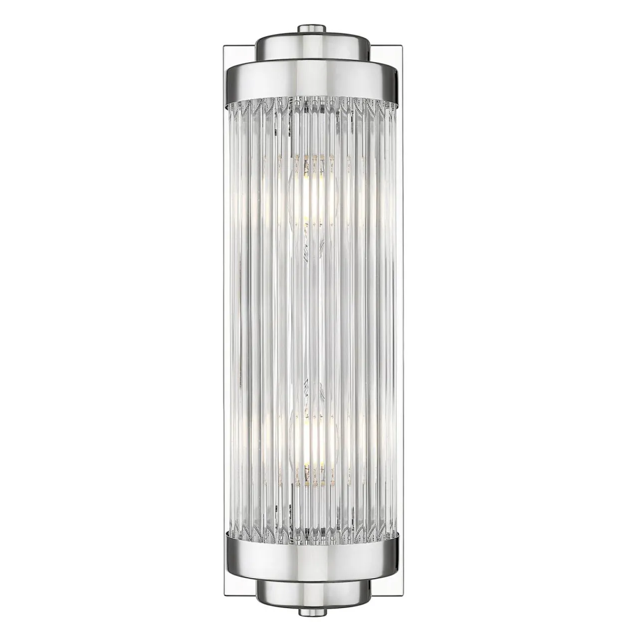 Szklany klosz ułożony ze szklanych elementów tworzy kształt walca. Całość wkomponowana jest w metalowe obramowanie i wzbogacona chromowanym wykończeniem. Wspaniale łączy się z jasnymi kolorami i pięknie prezentuje zarówno we wnętrzach klasycznych, jak również tchnących nowoczesnością. Jest również wysmakowanym dodatkiem, który współgra ze stylem glamour oraz nowojorskim.