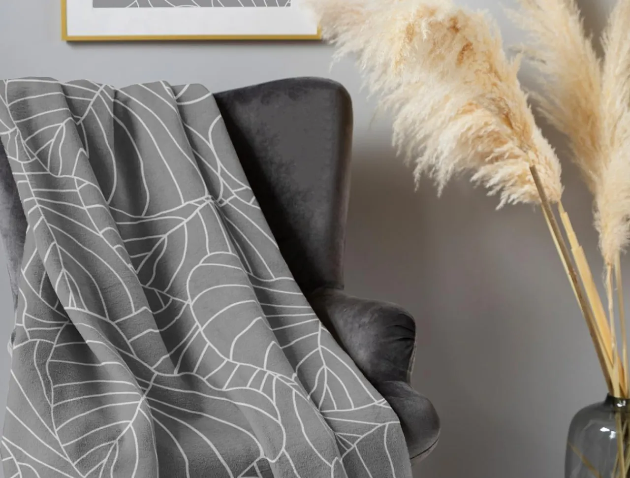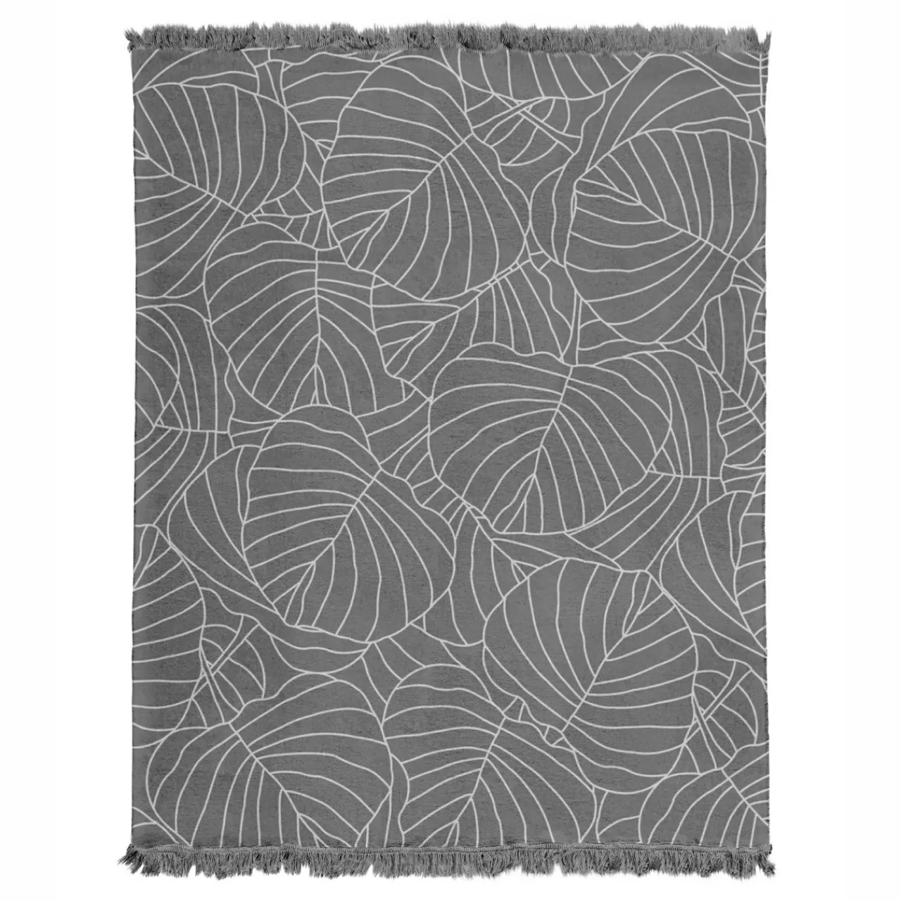 Bawełniany ciemnoszary koc z wzorem liści otuli Cię w zimną noc!