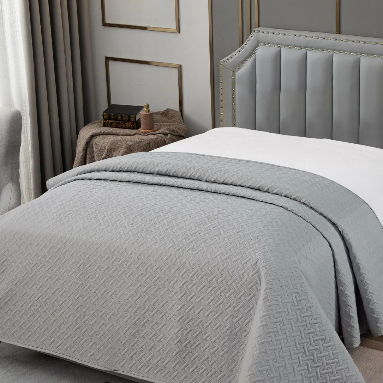Jasnoszara narzuta SELINE to uniwersalne dopełnienie nowoczesnej sypialni. Szary odcień odnajdzie się w wielu zestawieniach kolorystycznych.
