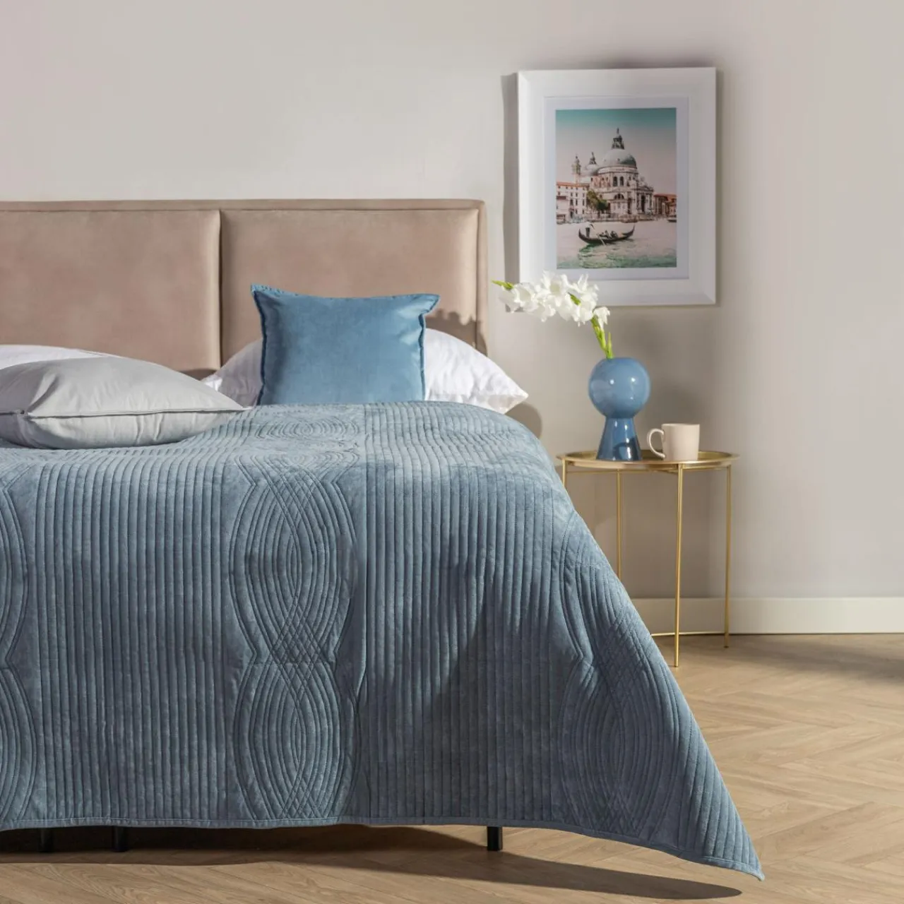 Jasnoniebieska narzuta SILKY zaakcentuje eleganckie i uporządkowane wnętrze.