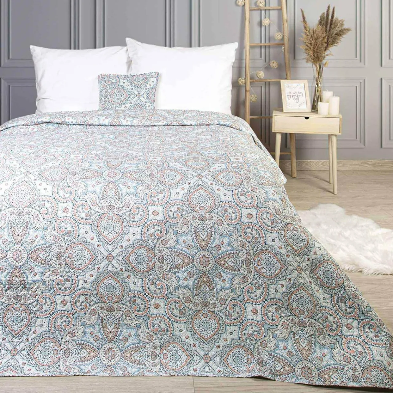 Drukowana narzuta na łóżko HAREM ozdobi sypialnię w stylu boho. Podkreśli egzotyczne dekoracje.