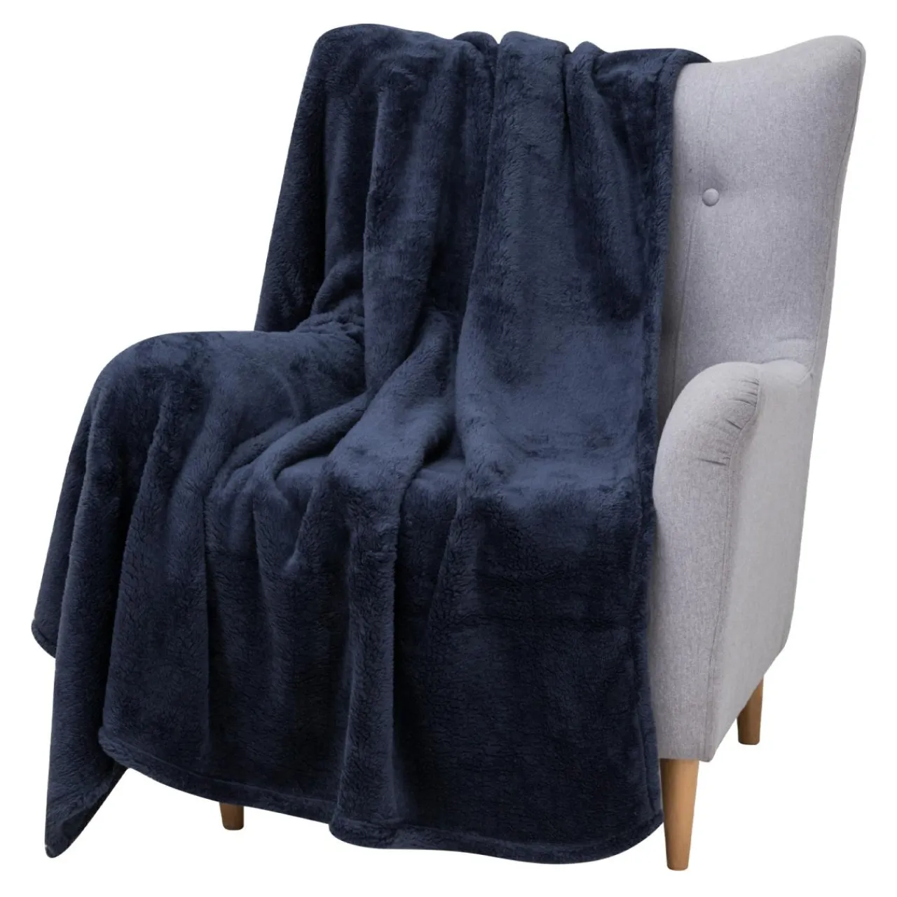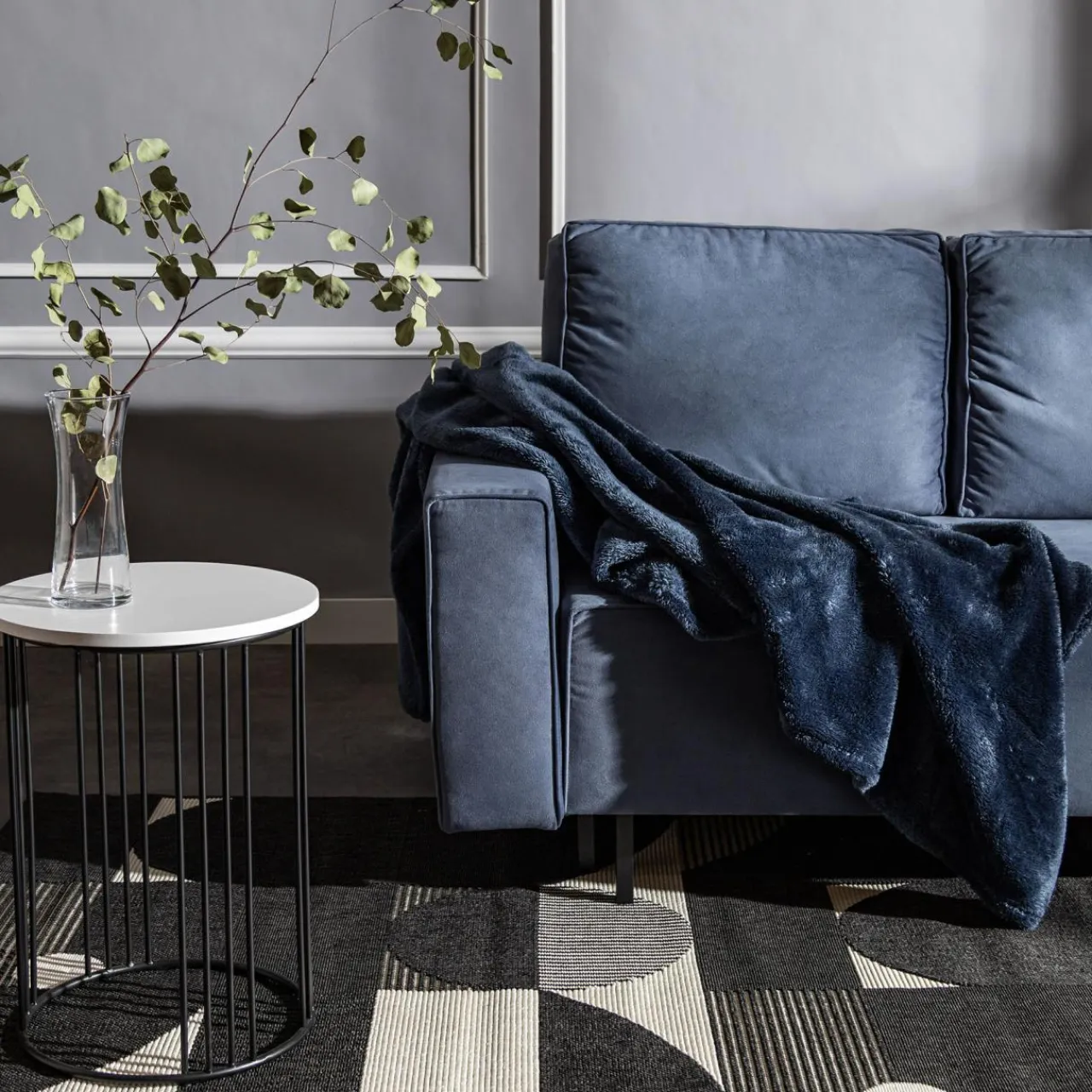 - Przewiązany sznureczkiem granatowy koc doskonale nadaje się na miły prezent dla męża, na urodziny lub na nowe mieszkanie.