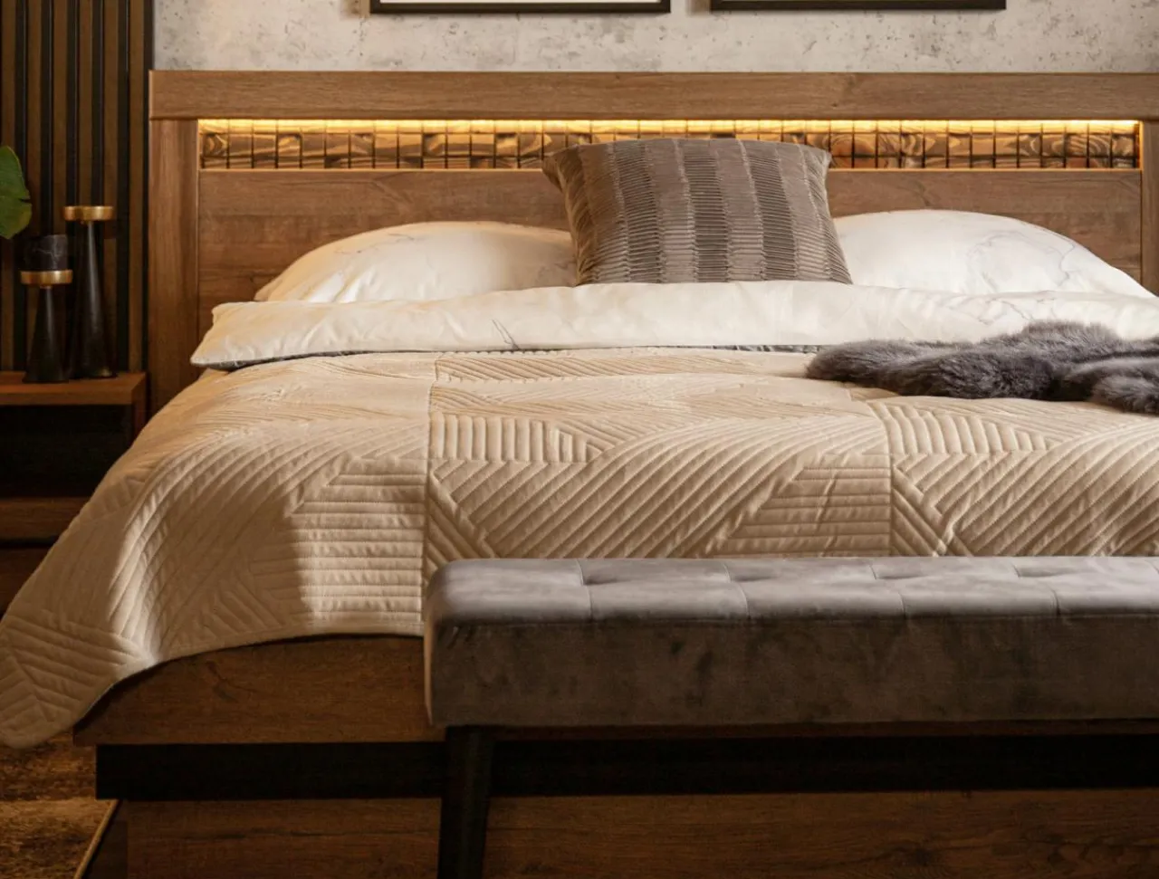 Estetyczne wykończenie oraz nowoczesny wzór czynią z niej efektowny dodatek do sypialni. Narzuta SENSO podnosi poczucie komfortu i sprawia, że wnętrze nabiera nowego, bardziej luksusowego charakteru.