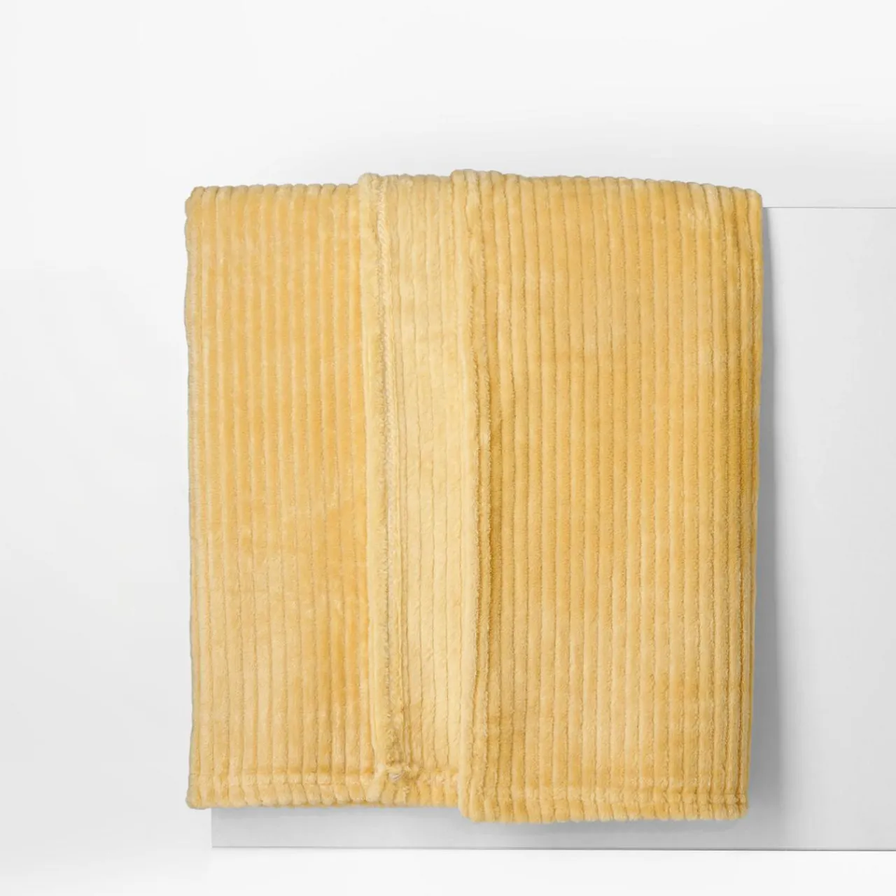 Chcesz się otulić w chłodniejszy dzień? Musztardowy koc RENEE pomoże miło się ogrzać i zrelaksować.