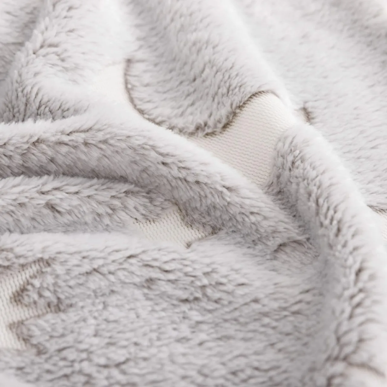 Miękki koc GLOVY w szarym kolorze ozdobi łóżko lub wersalkę w sypialni.