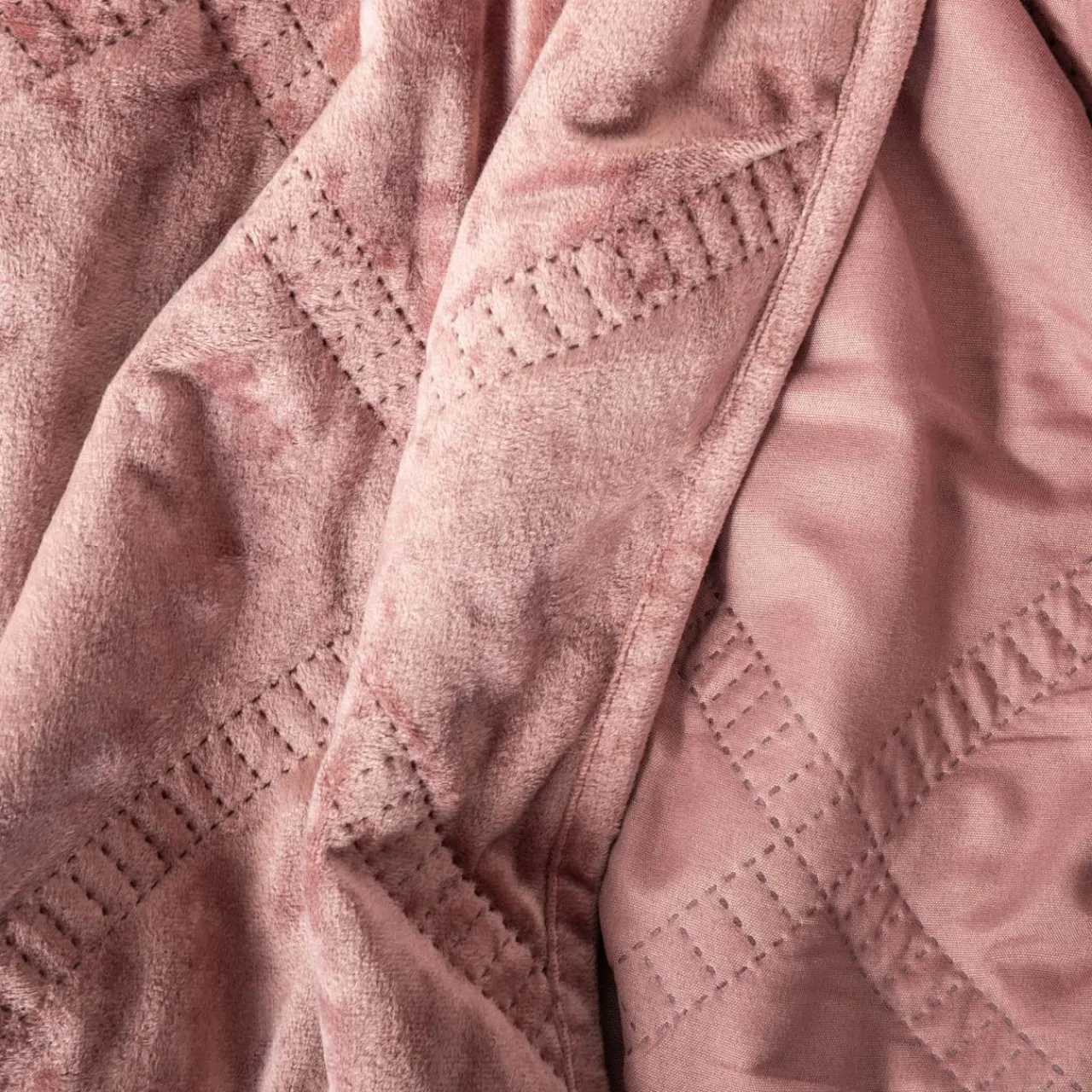 - Jasnoróżowa narzuta lekko wyróżni się na tle jasnej ściany czy grafitowego wezgłowia łóżka.