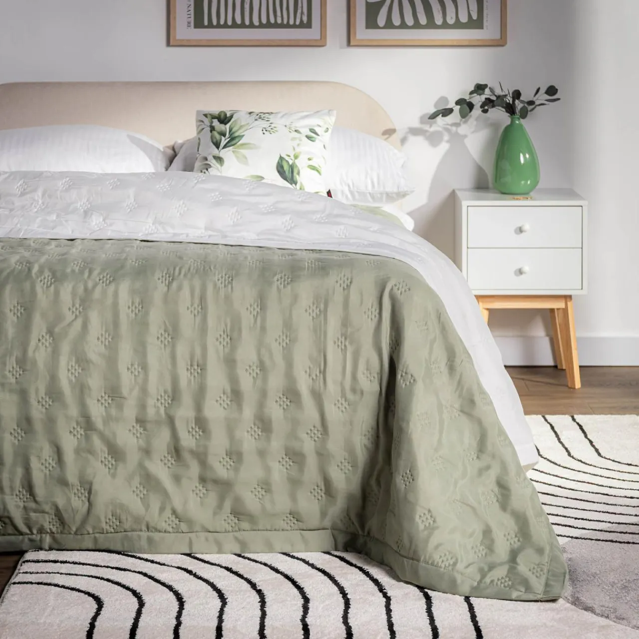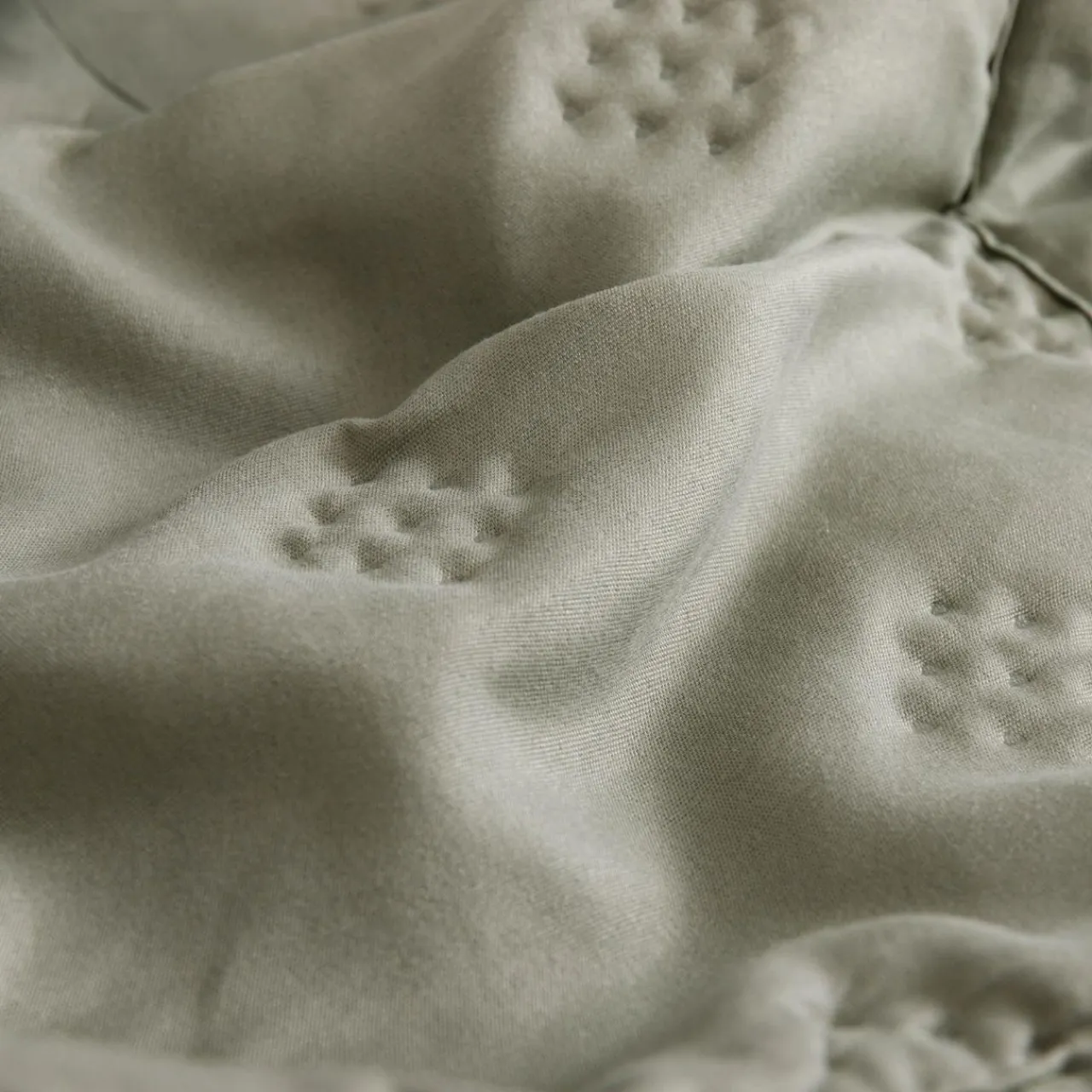 Narzuta z kolekcji CLOUD jest uszyta z poliestrowej tkaniny o subtelnym, dekoracyjnym wzorze.