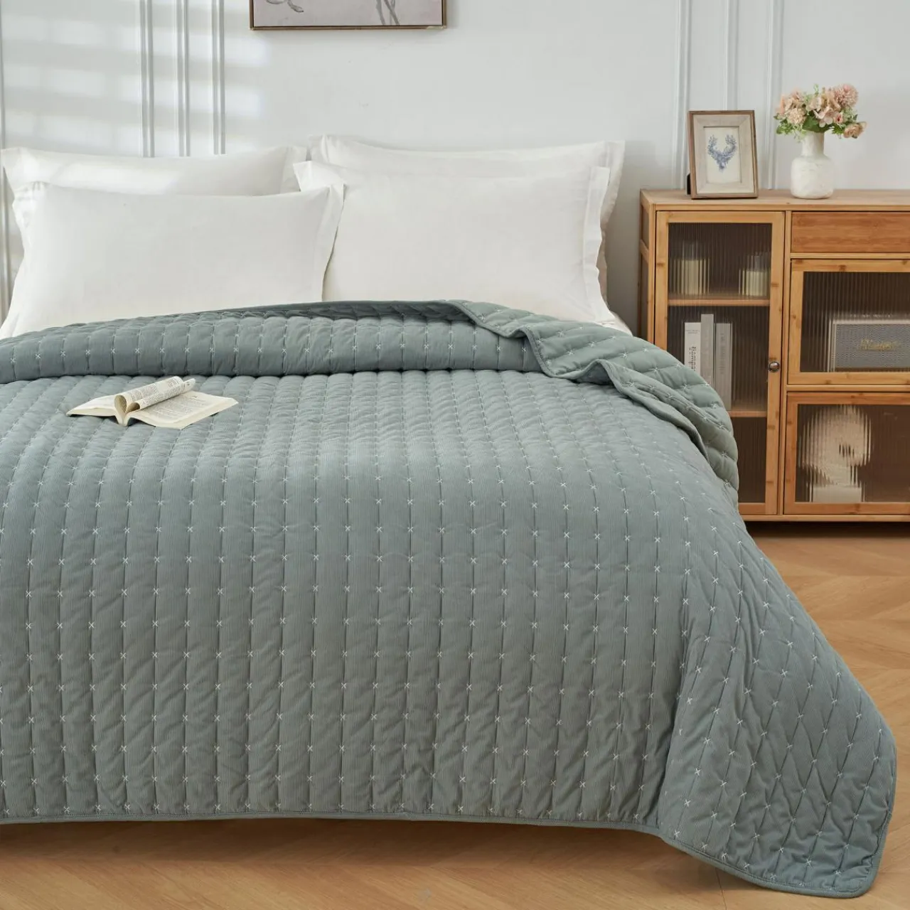 - Dekoracyjne pikowanie czyni ją eleganckim dodatkiem do sypialni.