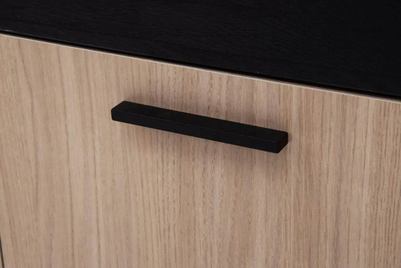 - Czarne wstawki i fronty sprawiają, że komoda prezentuje się elegancko.