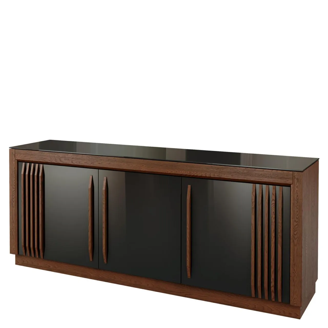 - Dzięki połączeniu czerni, ciemnego drewna i lamelom na froncie komoda wpisze się w nowoczesny styl.