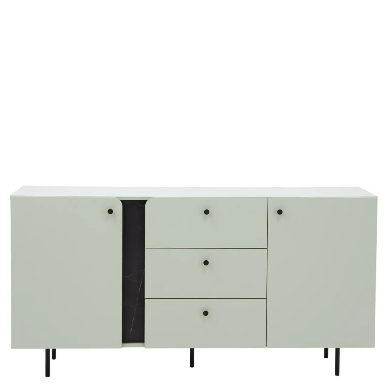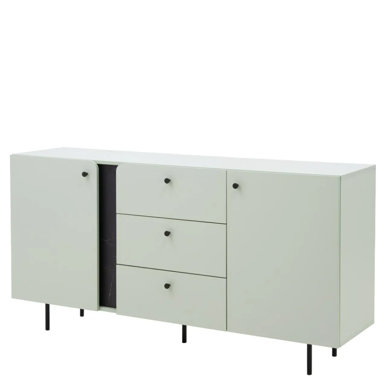 - Szałwiowe meble świetnie sprawdzą się łagodnej, industrialnej aranżacji. Surowa ściana, marmurkowe dekoracje to idealne tło. Dołóż pnące się rośliny, drewniane palety i czarno-białe dodatki, a uzyskasz efekt artystycznego salonu.