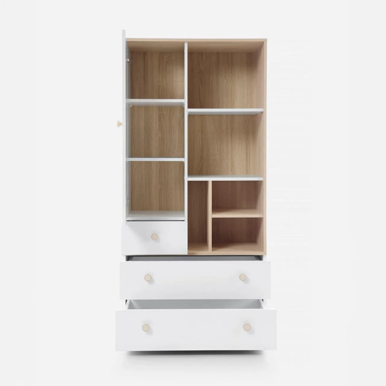 W wysokiej komodzie ZOYA poukładacie różnej wielkości zabawki i dekoracje, które umilą spędzanie czasu w dziecięcym pokoju.