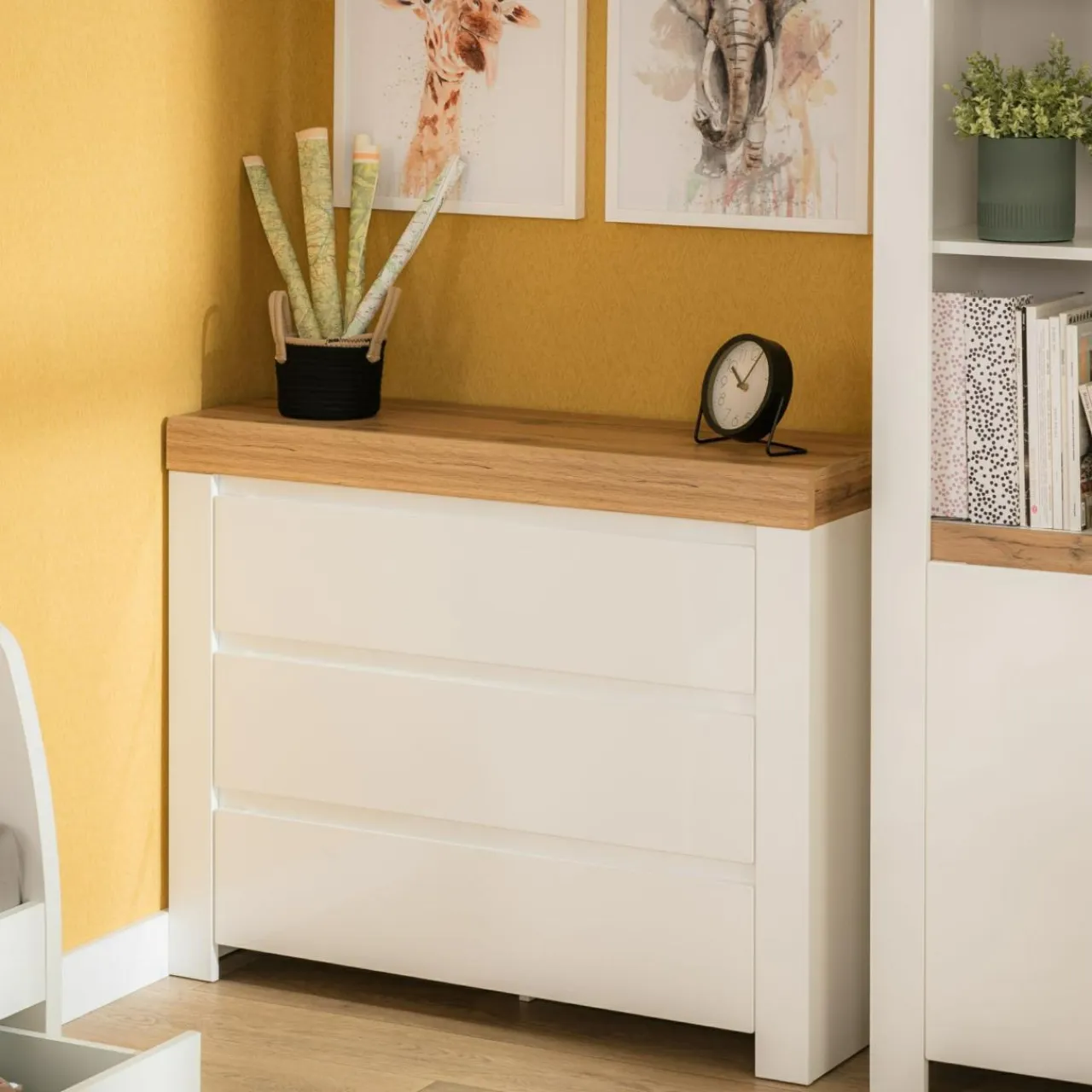 W komodzie TAURUS II schowasz drobną część garderoby — bieliznę, akcesoria do stylizacji i pozostałe przedmioty w pokoju.