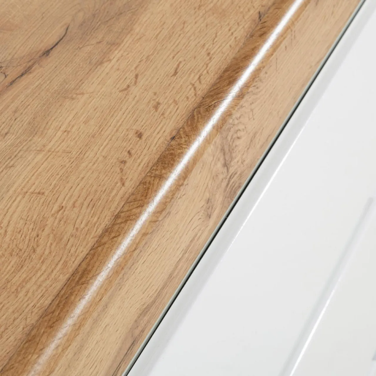 - Elementy w odcieniu dębu wotan posiadają wyczuwalną pod palcami fakturę przypominającą naturalny surowiec. W połączeniu z ciepłym wybarwieniem tworzą przytulną atmosferę.