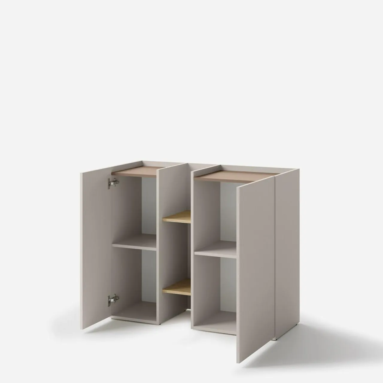 Otocz się ciepłem kaszmirowego beżu z kolekcji SIGMA. Gładkie fronty wprowadzą subtelną, spokojną i aurę, tworząc miejsce do codziennego wypoczynku. Elementy w kolorze truflowego brązu tworzą ciekawy, przełamujący akcent.